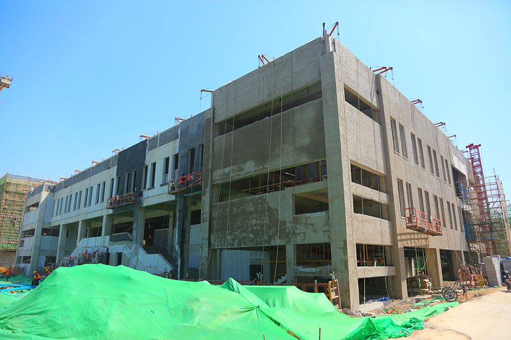 代建的济南市大学城实验学校,自2017年10月31日正式开工以来,建设方与各施工监理单位以“白加黑、5+2”工作节奏,全面有序推进工程建设。前期,经过“大干40天,确保春节前封顶”的强力推进,目前项目所有主要单体主体结构全部封顶。目前,项目已进入装修装饰工作的全力冲刺阶段,“大干100天,确保完美履约”,保证项目今年6月30日竣工,9月1日达到开学条件。