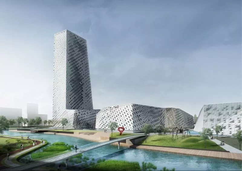 三馆二期项目北临兴福寺路,东至腊山河东路,西至腊山河西路,南接“一院三馆”,北邻印象济南泉世界。项目规划总用地范围4.65公顷,总建筑面积21.5万㎡,裙房6层,超高层塔楼34层。其中,地上建筑面积约15万㎡,地下建筑面积约6.5万㎡,提供700余个车位。