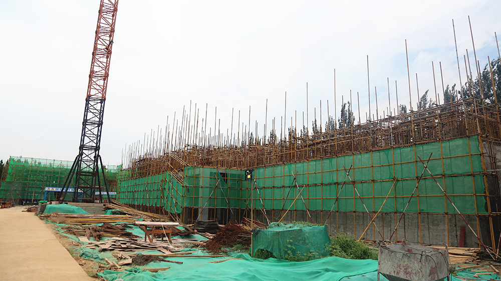 项目所有建筑中,最具标志性的当属城门楼,同时,这也是项目内工程量最大、工期最长的单体建筑。据现场负责人介绍,仅城门楼施工使用的钢管就已达20万米,占整个项目钢管消耗量的近一半,从基础施工到主体完工,需要耗时近4个月。