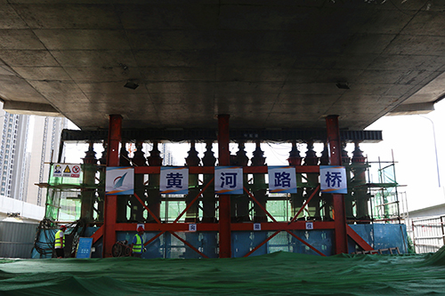 所属济南黄河路桥公司承建北园西延工程四标段,其中匡山立交改造是整个工程的重点和难点,自新建F、G匝道正式通车后,目前,主线第32联箱梁顶升施工正式完成,顶升时长25天,最大顶升高度4.202m,打破了济南桥梁顶升最高、修路断绝交通的惯例两项记录。