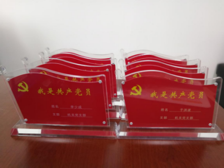活动中,机关支部党员结合自身岗位实际,做出争创“党员先锋岗”承诺,由支部统一制作“我是共产党员”座牌,摆放在每位党员办公桌的醒目位置。通过座牌亮出党员光荣身份,时刻警醒和监督党员,践行承诺,接受群众监督,使党员的身份意识、责任意识和先锋模范意识得到进一步提高。