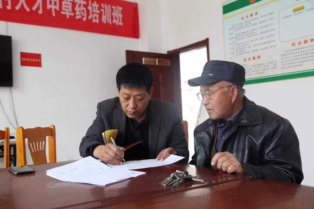 到村后,张庆红首先与村委会副主任路传童对接了农田灌溉机井安装电表及贫困户安置房维修事宜。