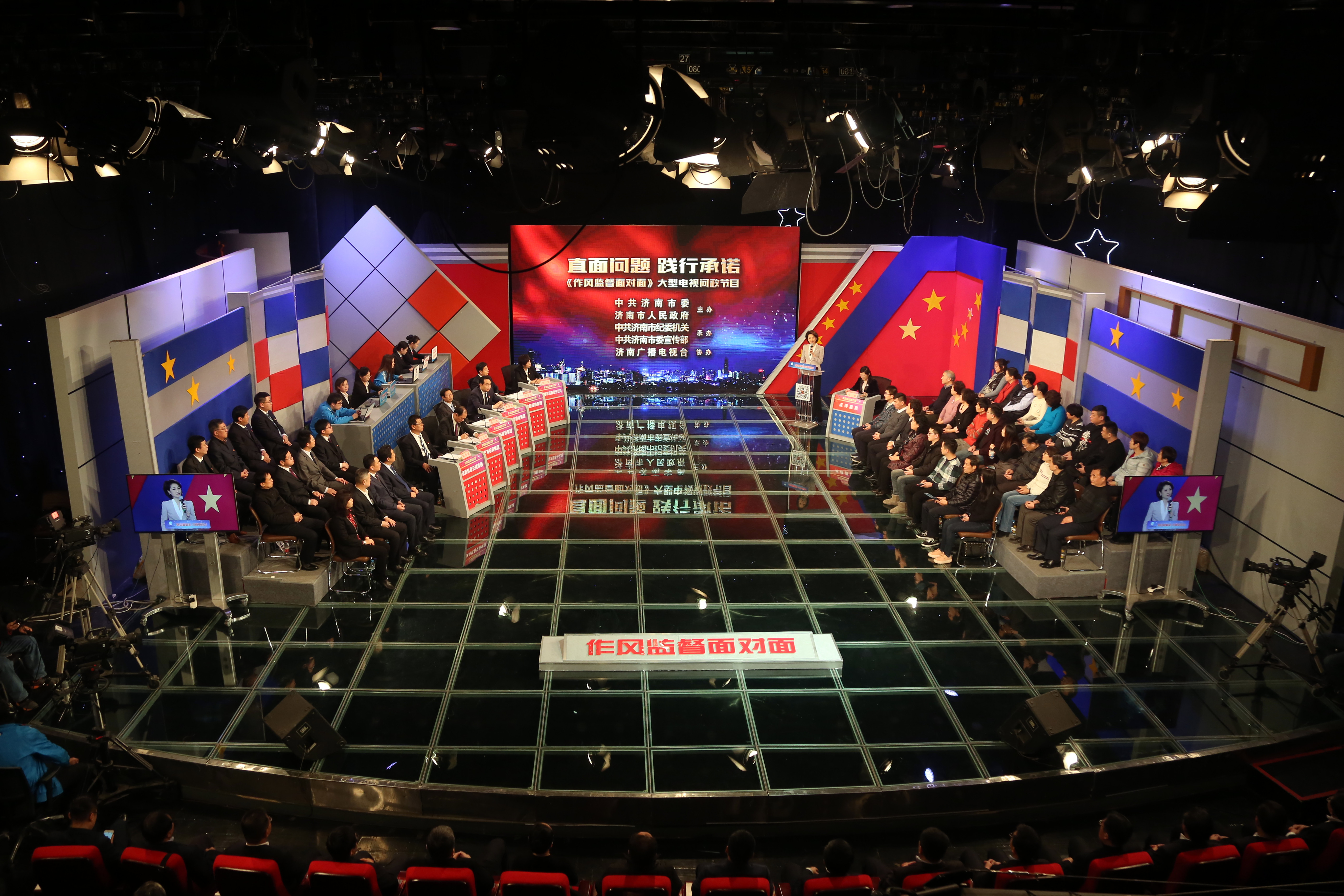 与济南城投集团、济南轨道交通集团、济南产业发展投资集团、济南金融控股集团、中国邮政集团济南市分公司共同做客“直面问题、践行承诺”《作风监督面对面》大型电视问政访谈节目。集团党委书记、董事长李国祥,集团领导班子成员,各相关部室、子公司及整合企业负责人参加节目录制。