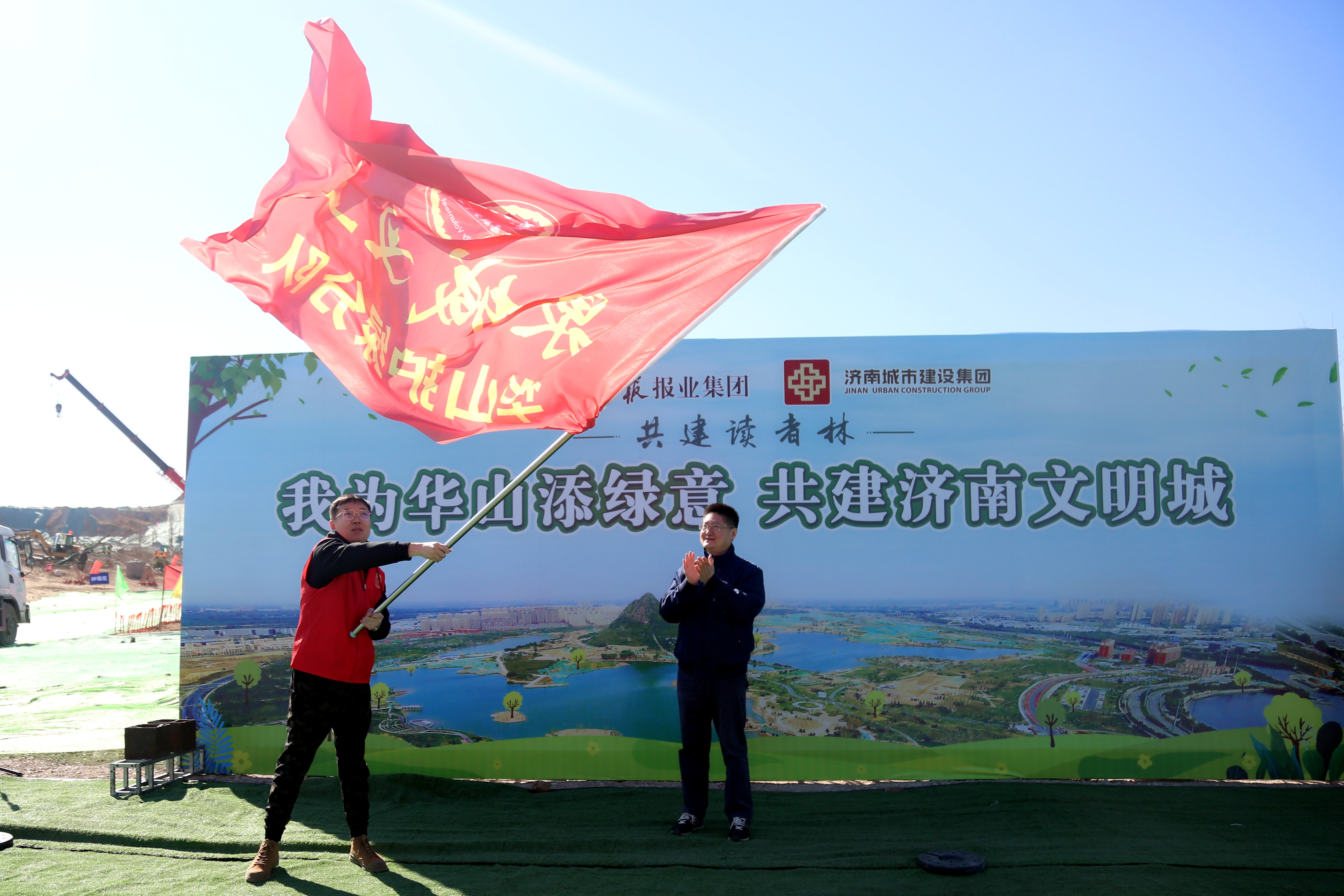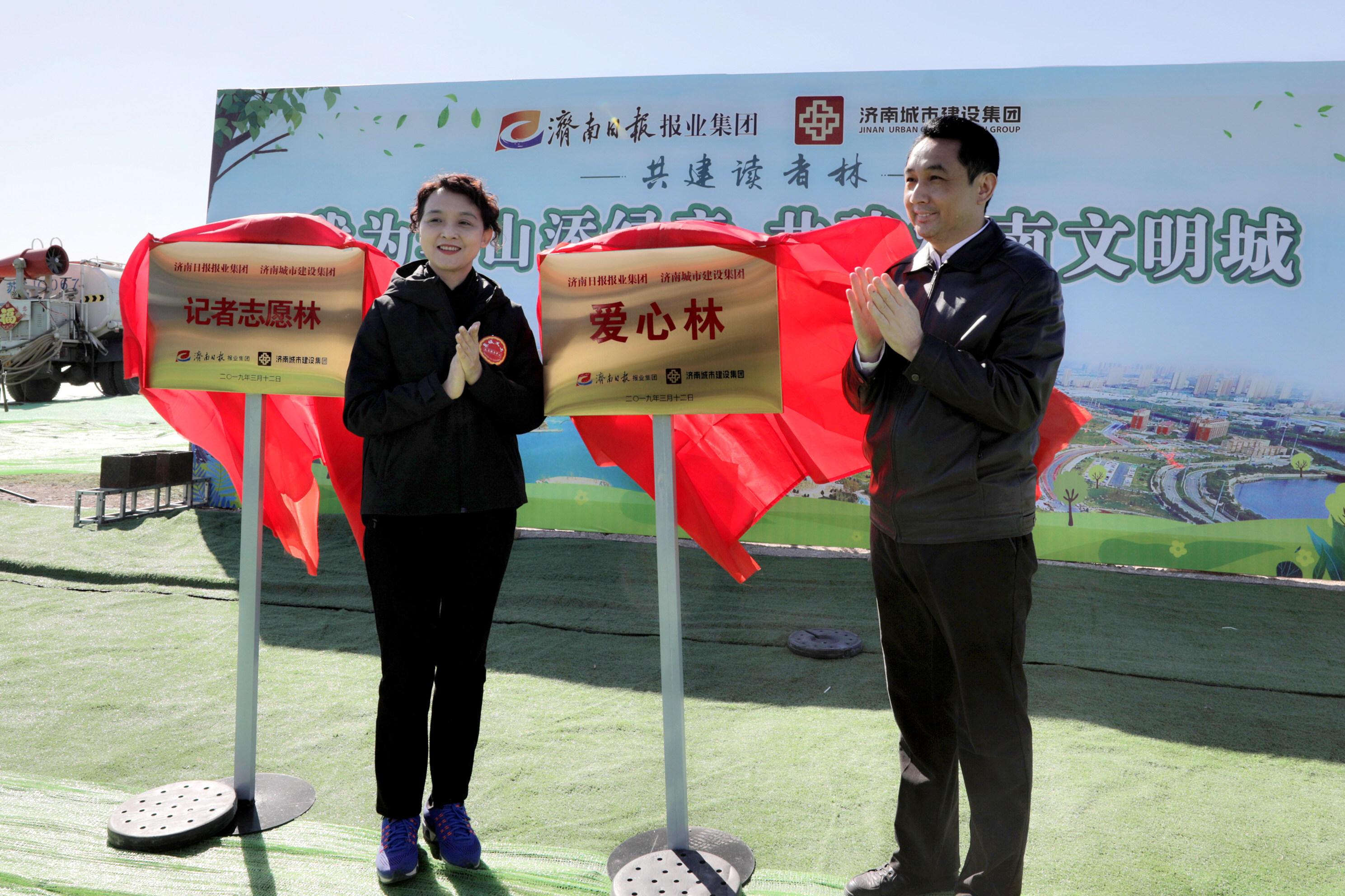 党委书记、董事长李国祥,济南日报报业集团董事长、党委书记、济南日报社社长马利共同为“记者志愿林”和“爱心林”揭牌。