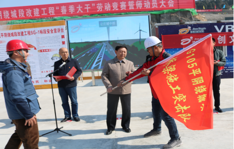 会上,济南市公路管理局项目管理中心曹磊宣读2019年“春季大干”劳动竞赛活动实施方案;各参建单位项目负责人签订目标责任状并作表态发言;济南市公路管理局郭宗杰副局长向各施工单位、监理单位授劳动竞赛突击队队旗,展示劳动竞赛流动红旗并讲话。