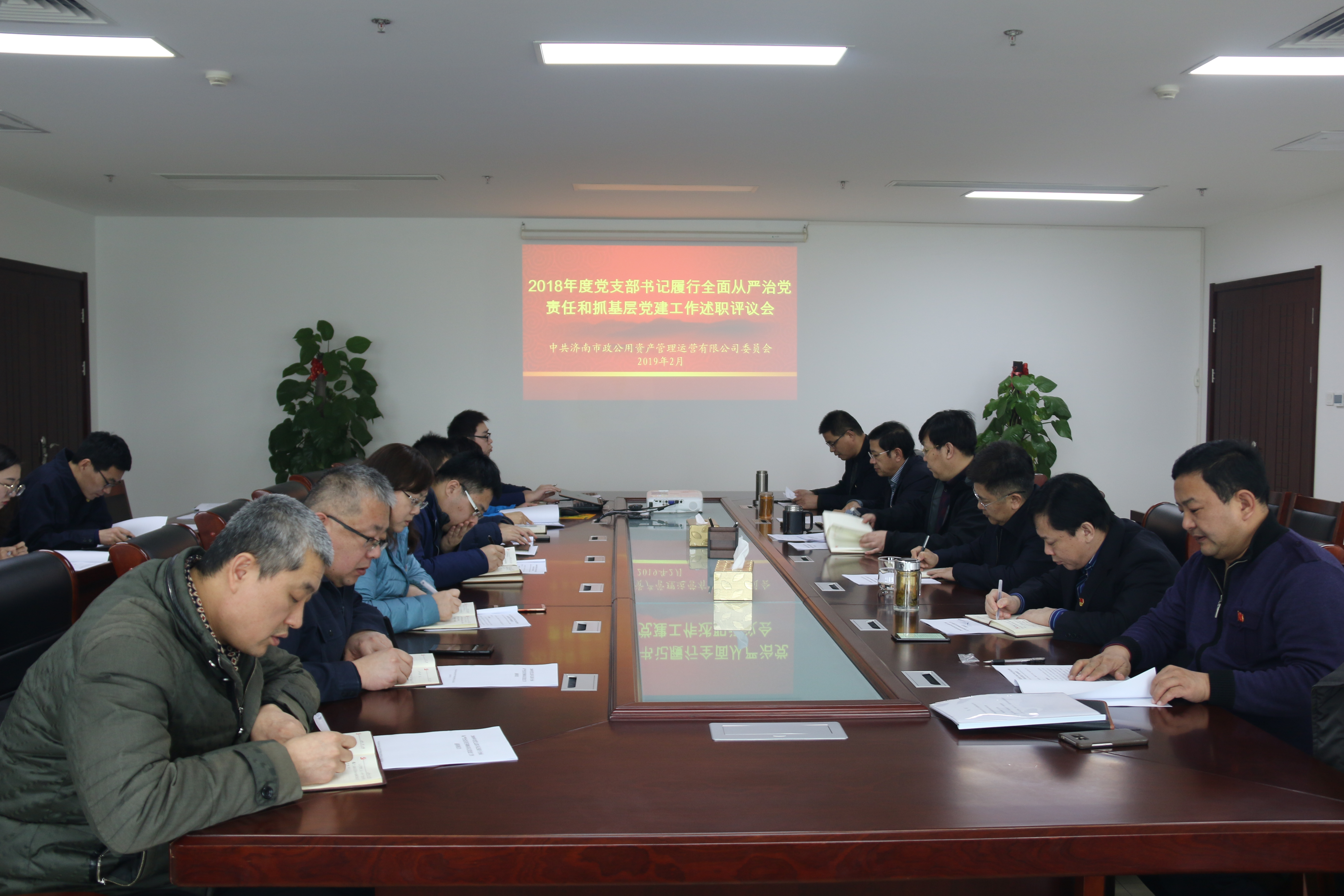 2月27日下午,市政资产运营公司党委在公司1066会议室召开了2018年度党支部书记履行全面从严治党主体责任和抓基层党建工作述职评议会,对各党支部书记履行全面从严治党责任和抓基层党建工作进行述职评议并进行测评投票。公司领导班子成员,各党支部书记,党员中层干部代表及党员职工代表共20余人参加会议。会议由党委书记、董事长于洪波同志主持。