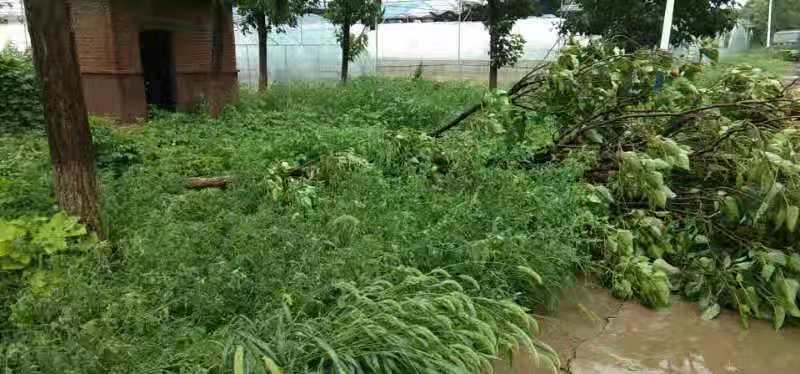 遭强台风“利奇马”的肆虐,济西湿地生态农场遭受前所未有的损失,大风、强降雨造成园区大棚、基础设施严重受损;据不完全统计,济西湿地生态农场本部基地受灾大棚63座(棚膜严重受损),楸树连根拔起33棵,冷库、生资库损坏漏雨11处,大田玉米倒伏60余亩,严重影响产量。