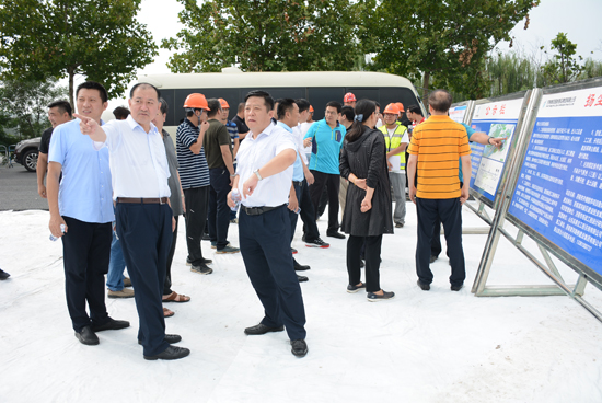 调研过程中,现场工作人员结合当前施工道路两侧的防尘、降尘措施、施工进度、质量管控以及工程项目管理工作的开展情况作了详细汇报。
