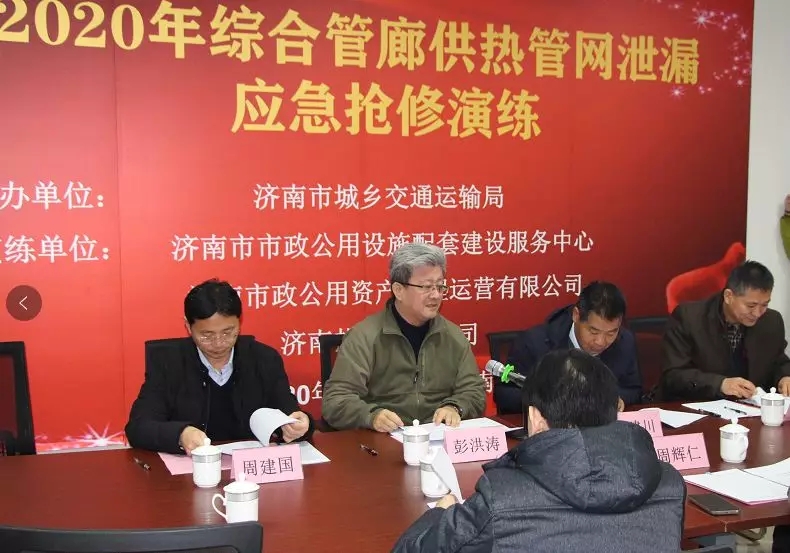 为深入贯彻市委、市政府关于安全生产的决策部署,按照市安委办《关于深入开展应急演练活动的通知》的具体要求,提高综合管廊应急处置能力和管廊管线运行安全水平,完善管线联动机制,1月7日上午,济南市城乡交通运输局组织开展2020年综合管廊供热管网泄漏应急抢修演练,济南市市政公用设施配套建设服务中心、济南市政公用资产管理运营有限公司、济南热电有限公司参加本次演练。