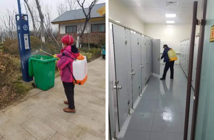各标段均安排专人做为防疫专员,对所有进入建筑工地的人员进行体温检测,逐一记录并做好统计,严控各标段务工人员返岗,对景区卫生间、垃圾箱、座椅等易污染设施严格实行不低于每日四次的喷洒消杀药剂措施。