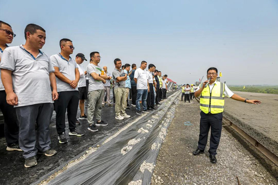所属济南金曰公路工程有限公司组织召开3D水稳基层施工观摩交流会,观摩会邀请省市公路、交通、市政系统的行业主管部门、施工单位、设备商、科研机构参加。
