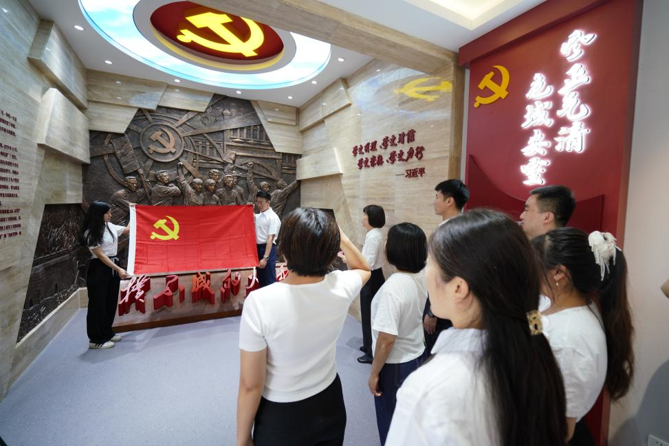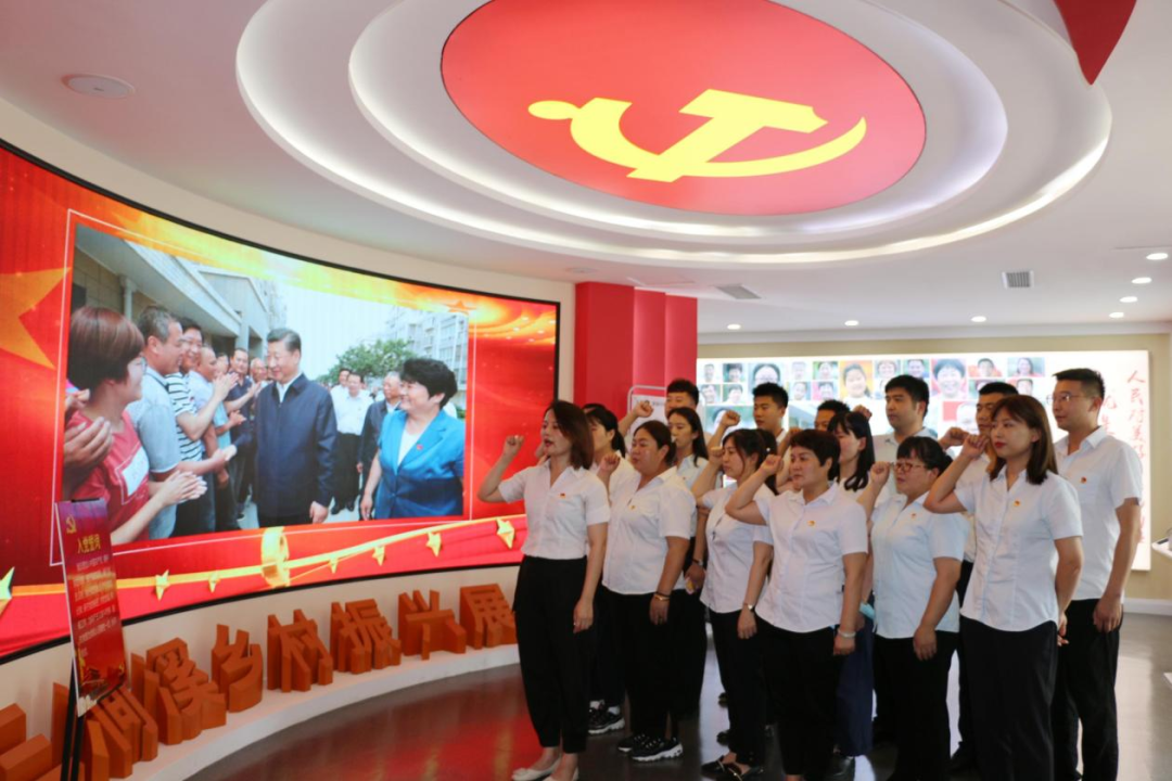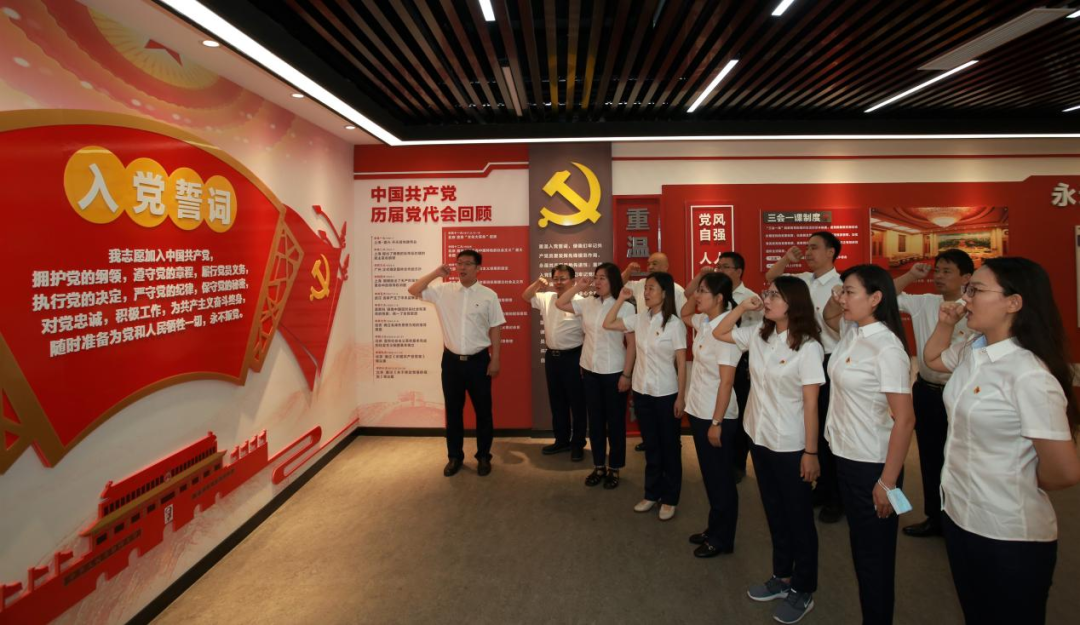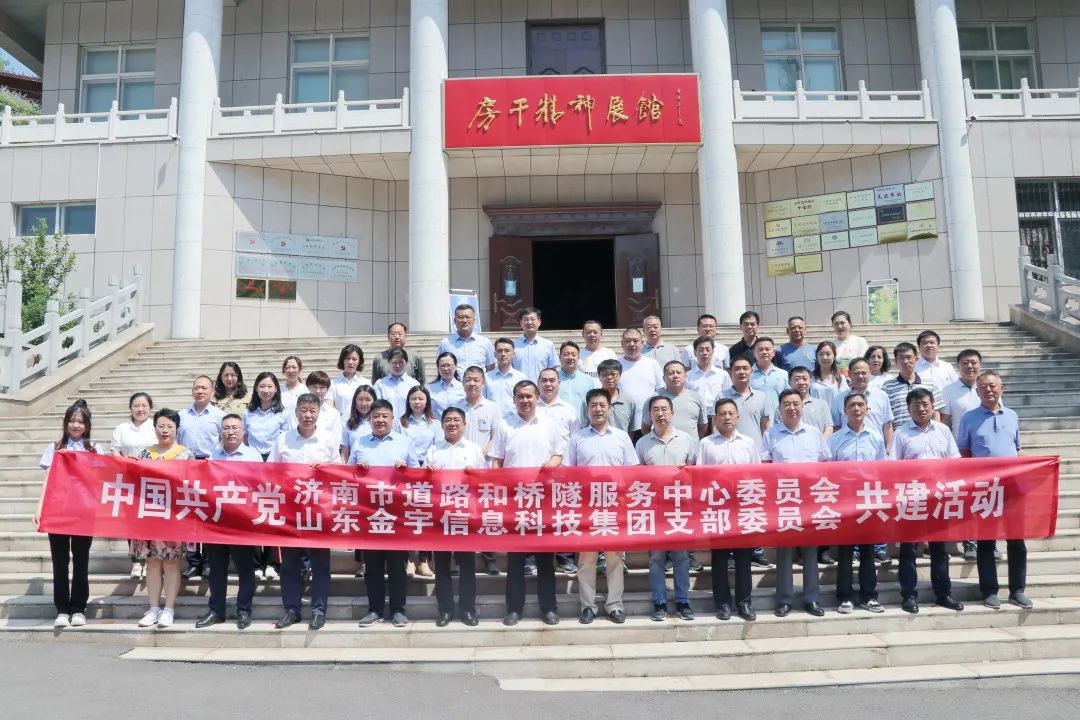 山东金宇信息科技集团党支部与济南市道路和桥隧服务中心党委开展共建,组织党员赴山东省党史教育基地之一--济南市莱芜区雪野街道房干精神展馆,共同开展“迎‘七一’,重温入党誓词”主题党日活动。活动现场,全体党员面对党旗庄严宣誓,重温入党誓词,再忆入党初心,坚定理想信念,强化党性修养。