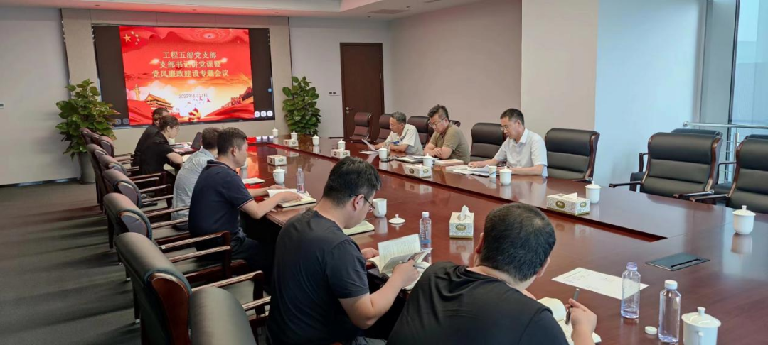 工程五部党支部在科创城项目现场开展重温入党誓词主题党日活动,同时开展支部书记讲廉政党课活动,夯实干部职工廉洁底线,激励干部职工不断加强作风建设,筑牢廉洁自律意识,高质量开展工作。