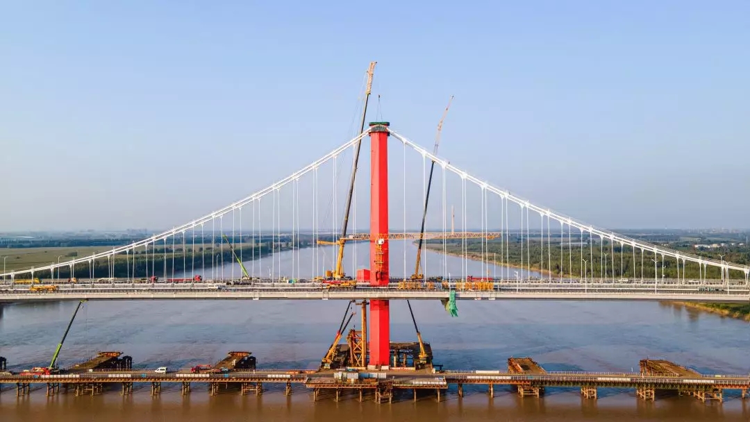 耐久之桥。项目大面积应用组合桥面板。主桥、水中引桥及跨大堤引桥的全长2788米范围内,均采用正交异性钢-混凝土组合桥面板,有效解决了钢桥面系疲劳及桥面铺装易损难题,增加结构耐久性和可维护性。