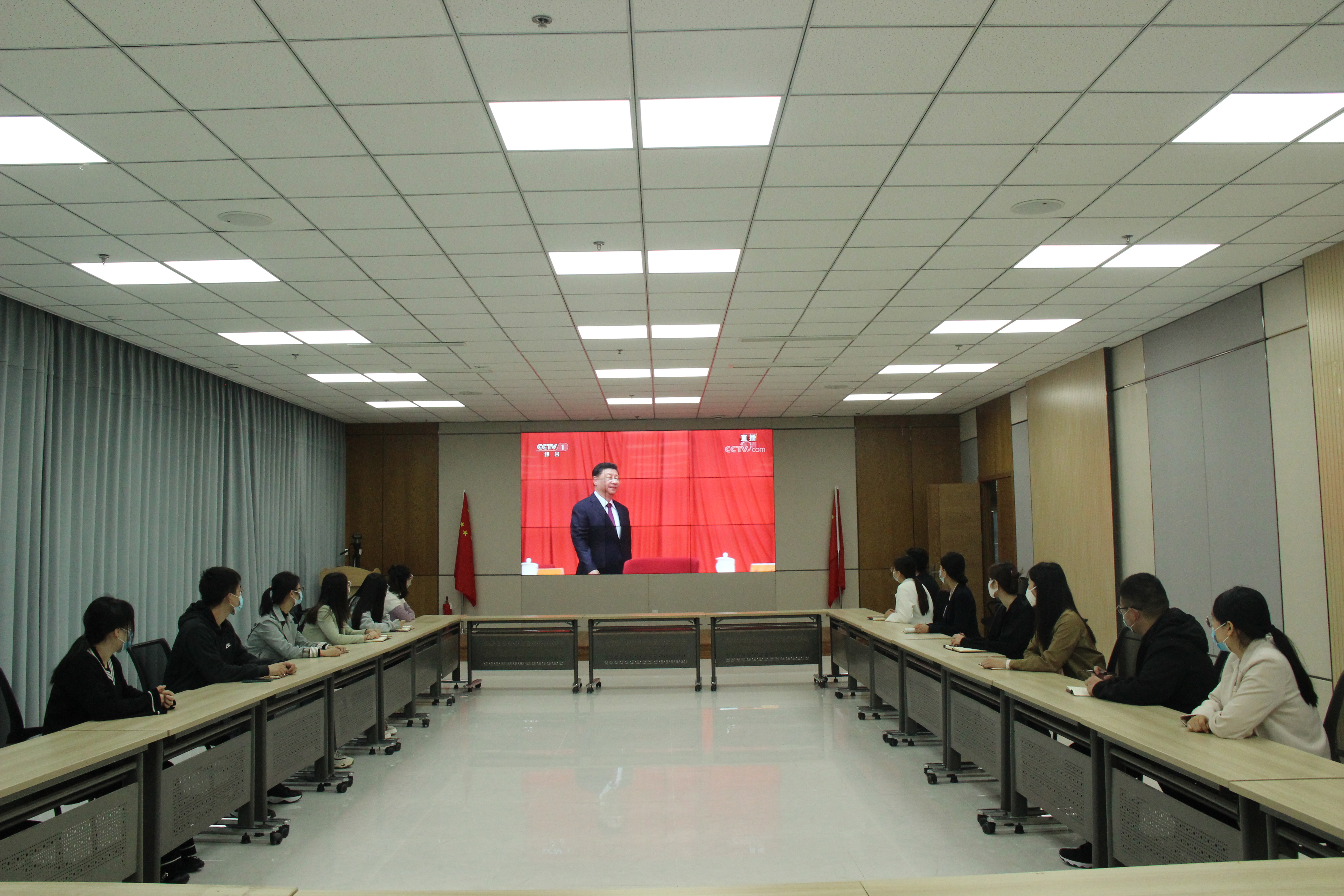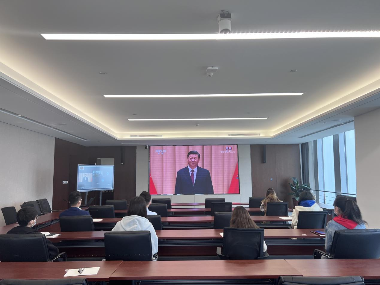 投资有限公司团支部组织在岗团员青年、团干部集中观看直播。