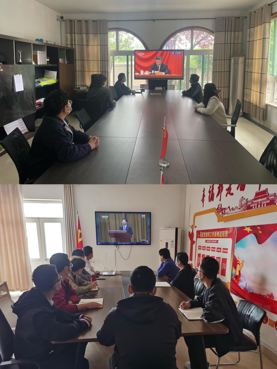 公司团委成员在会议室集中收看,各支部成员结合各自实际,分别组织收看。
