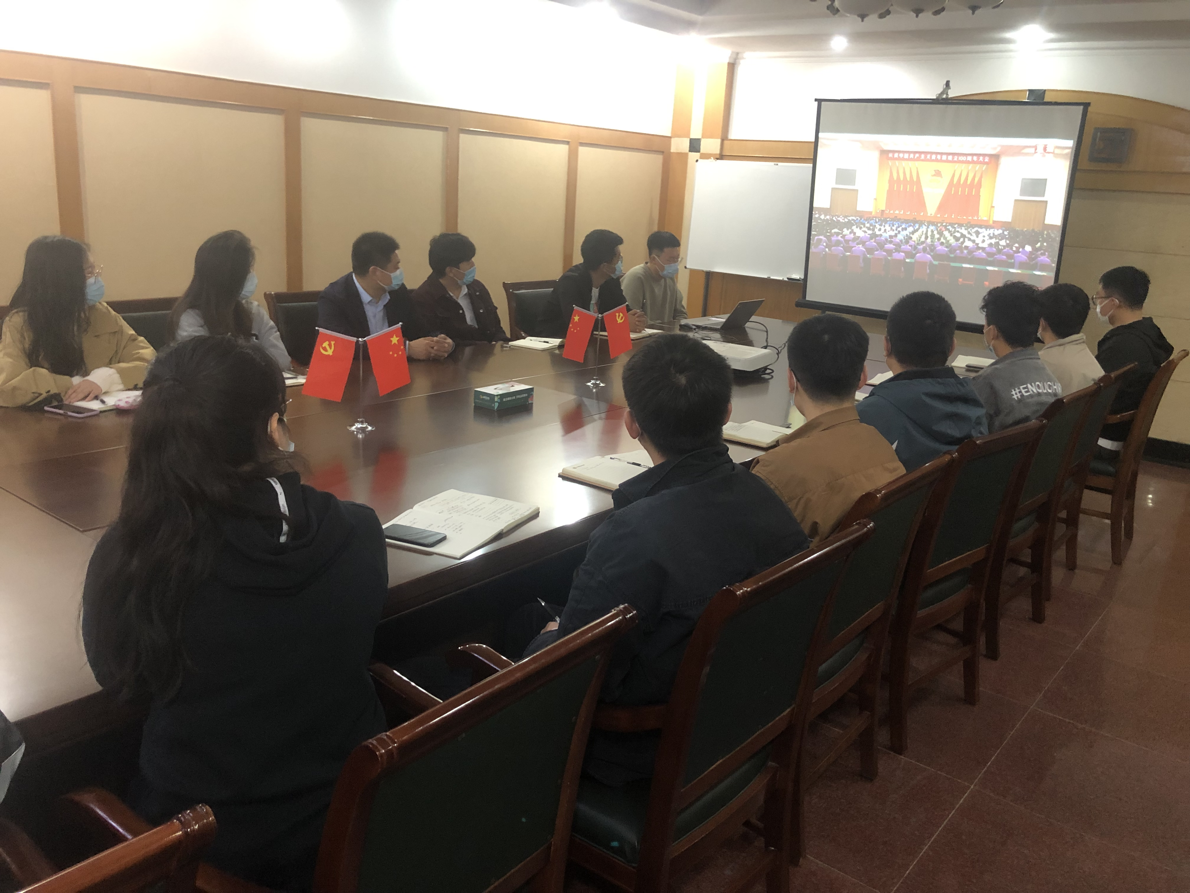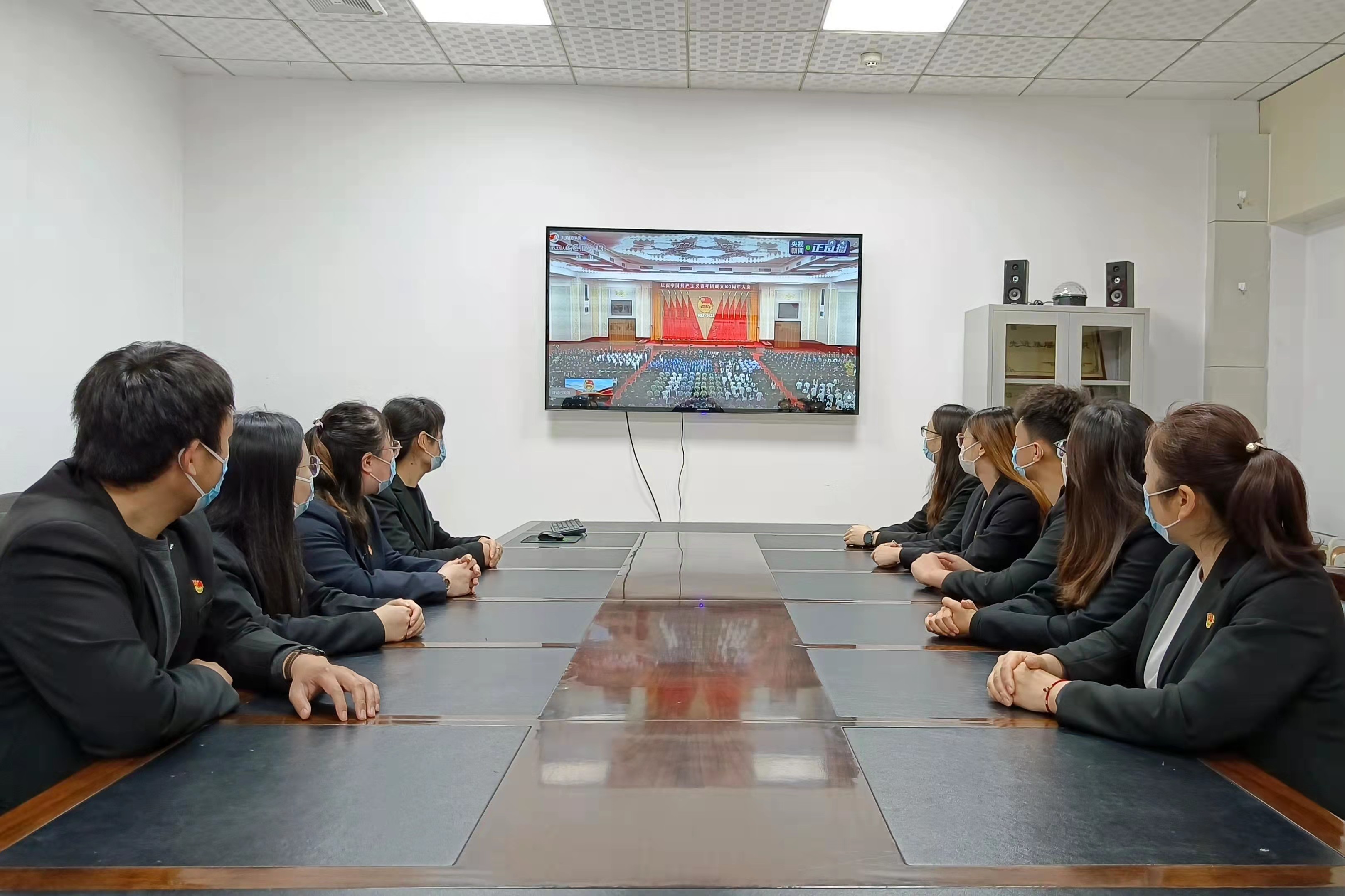 济南金衢公路勘察设计研究有限公司团总支组织全体团员观看庆祝中国共产主义青年团成立100周年大会。