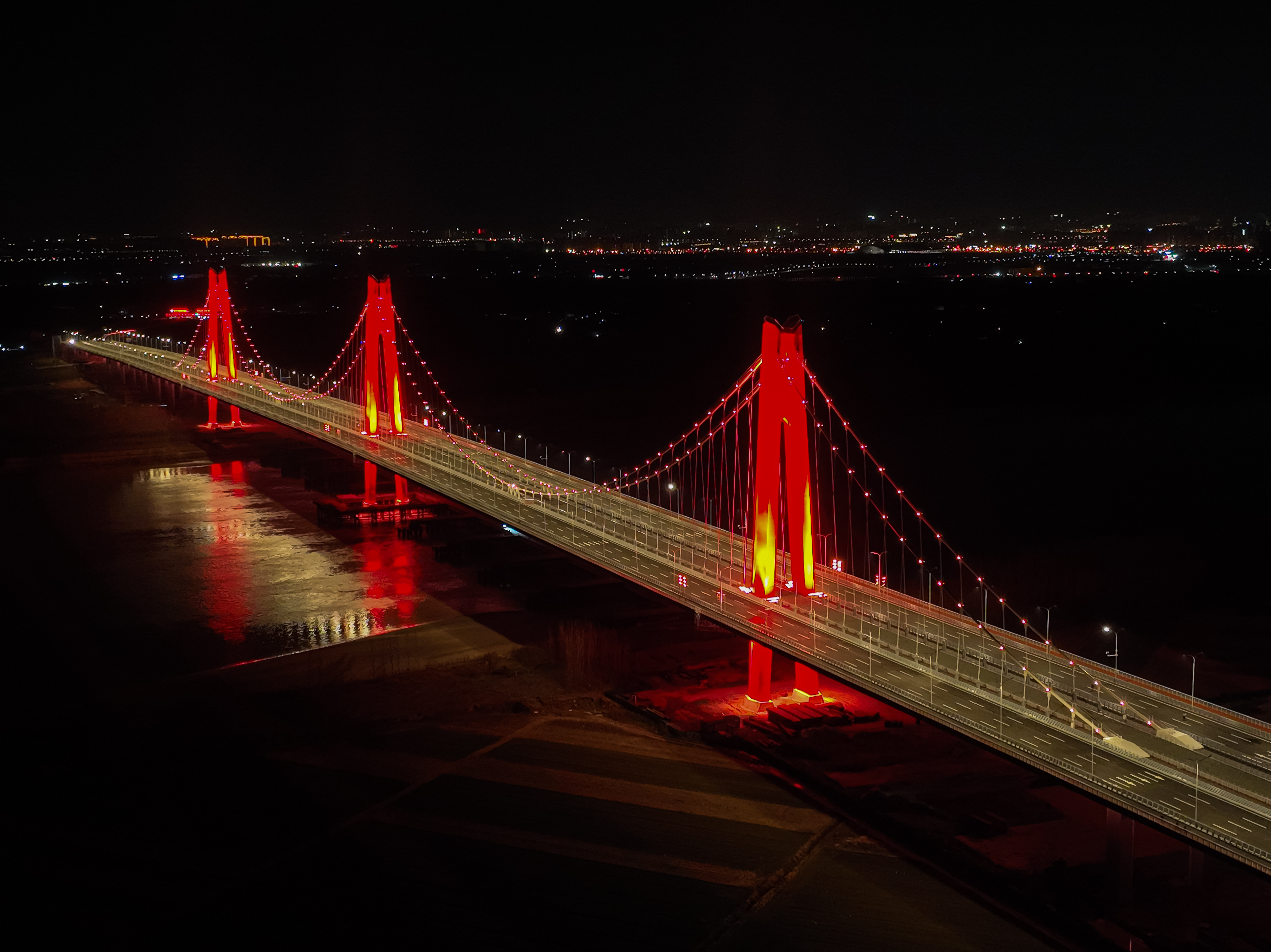 济南黄河凤凰大桥是联通济南市主城区和新旧动能转换起步区的重要纽带,是我市推进“北起”拥河发展战略的重要组成部分,更是贯彻落实国家黄河生态保护和高质量发展、国家新旧动能转换起步区及省委、省政府“强省会战略”三大战略部署的具体展现。该桥自2018年9月开工建设,2021年9月交工验收,2022年1月18日通车运行,是黄河上最大的三塔自锚式悬索桥,同时也是黄河上最大的钢结构桥。在工程建设期间,各参建单位抽调精兵强将,组建了优秀的项目团队,不断优化施工方案,加强精细化管理,努力克服新冠疫情等不利影响,全面攻克了工程钢结构体量大(大桥总用钢量高达11.4万吨,相当于2.7个鸟巢,三个钢塔1.4万吨的用钢量就等于两座埃菲尔铁塔)、不具备水运条件、水上大型设备无法使用,超长、超重、大悬臂、长距离、曲线钢箱梁顶推施工等各类难点要点,安全、优质、高效地完成了工程建设任务,创造了多项“世界之最”,是名副其实的“超级工程”,成为了国内先例,为在黄河上建设超大型桥梁积累了大量的宝贵经验。