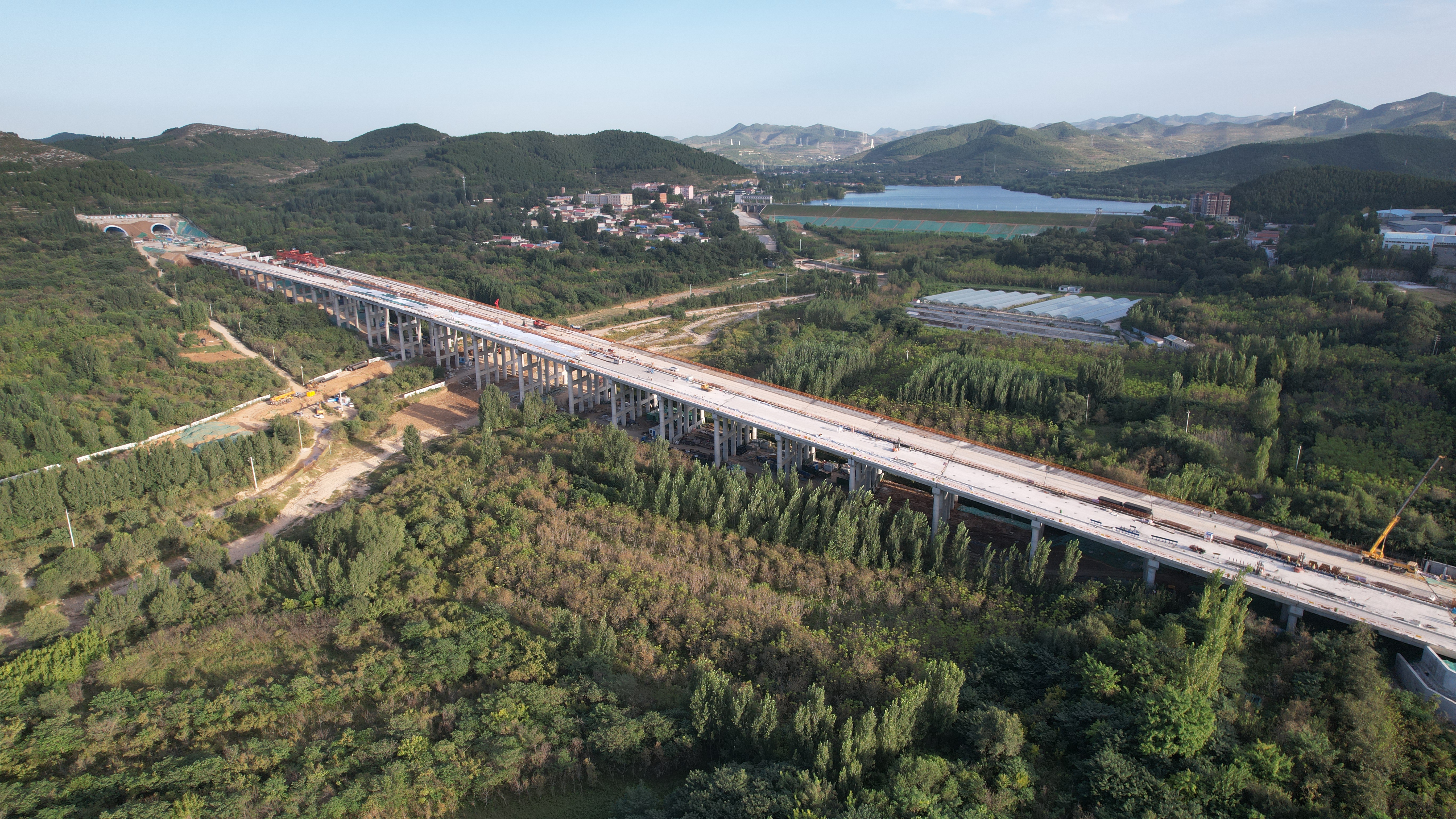梁板预制于2021年9月24日开始持续稳产,梁场采用复合5+1mm不锈钢模板、智能张拉设备、智能压浆设备和自动喷淋养护等先进工装设备,从而确保预制箱梁质量可控;圣井道材中心预制场于9月6日完成了西巨野河大桥全部箱梁预制工作。