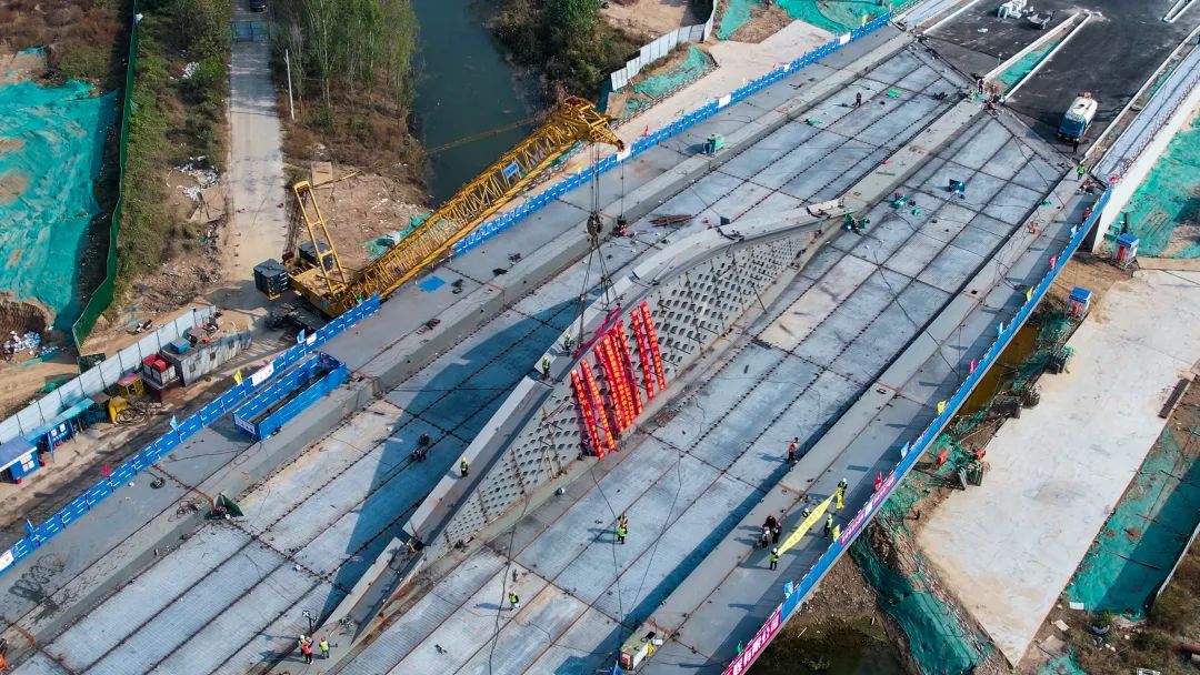 受委托建设的济南新旧动能转换起步区横一路大寺河桥、横二路大寺河桥钢结构吊装顺利完成,项目建设有序推进。