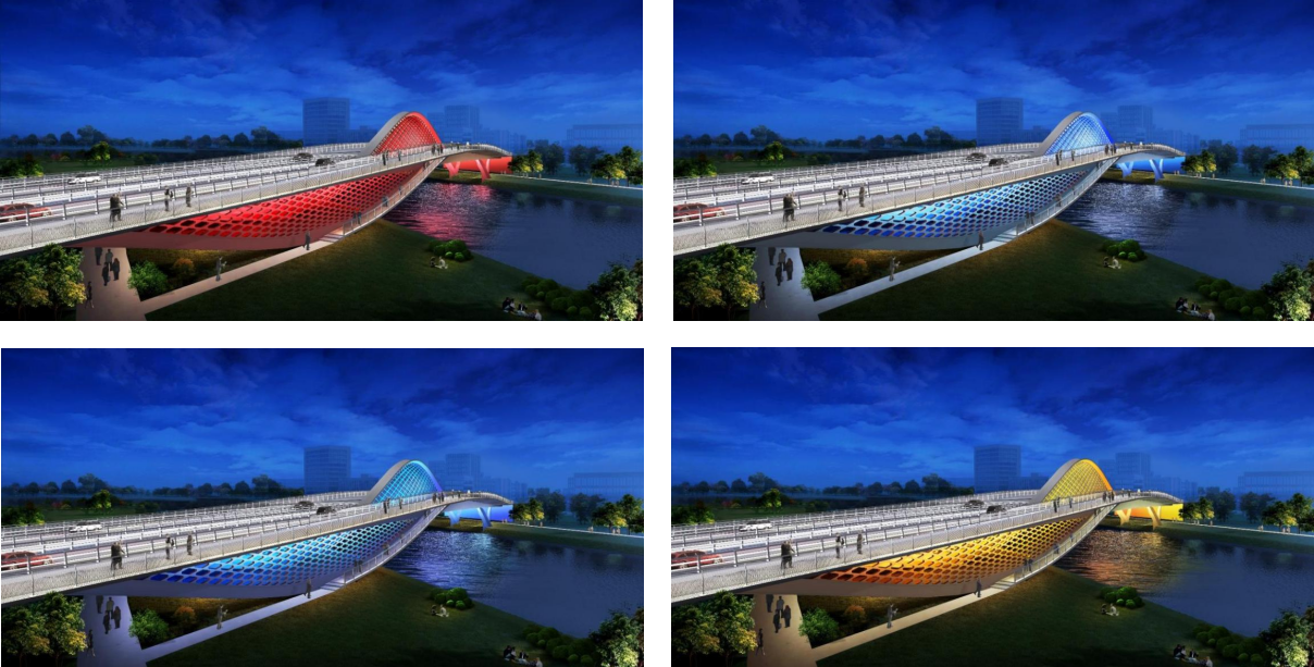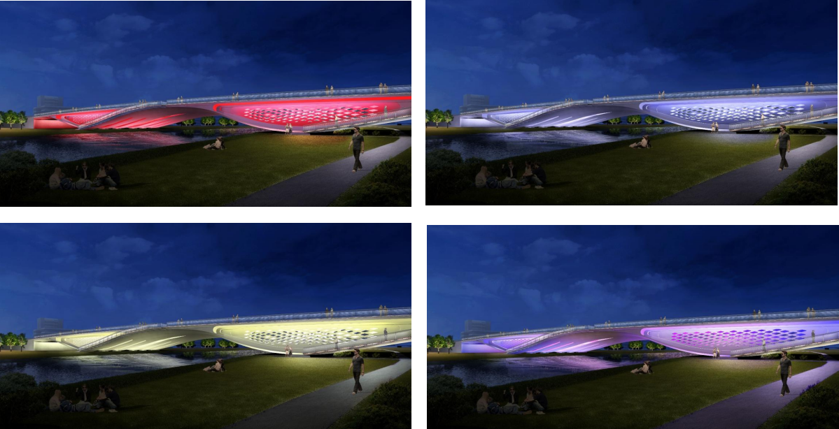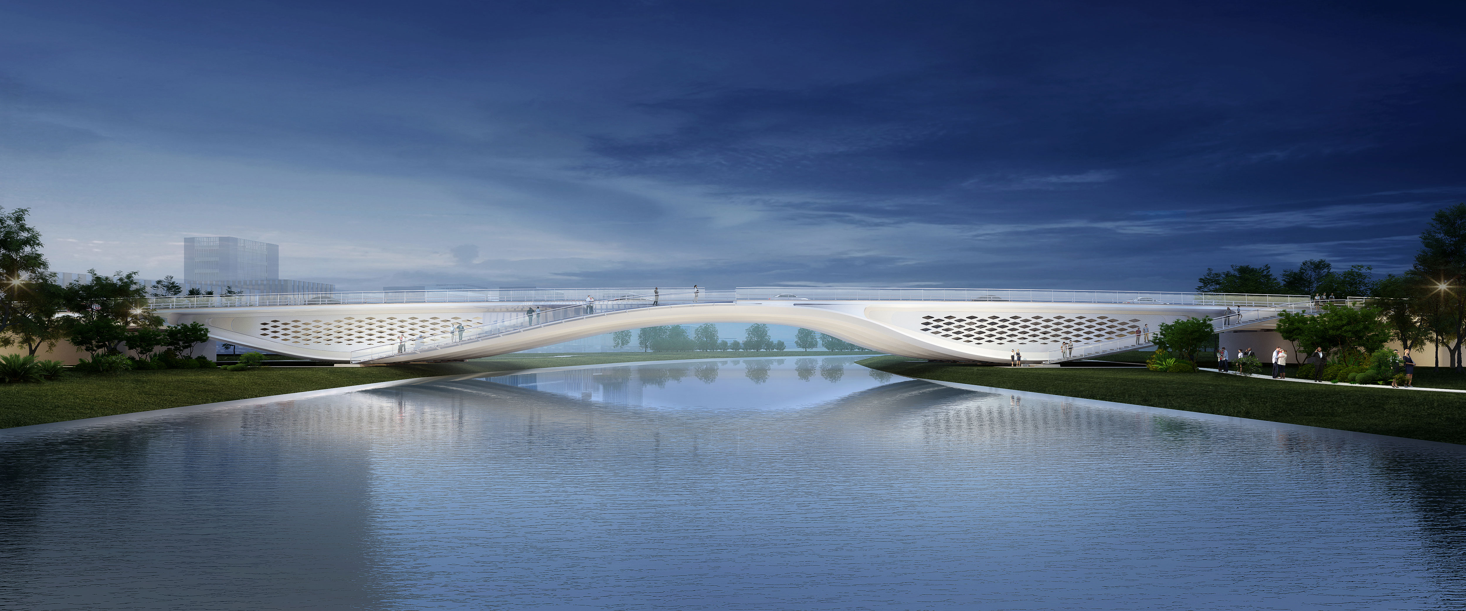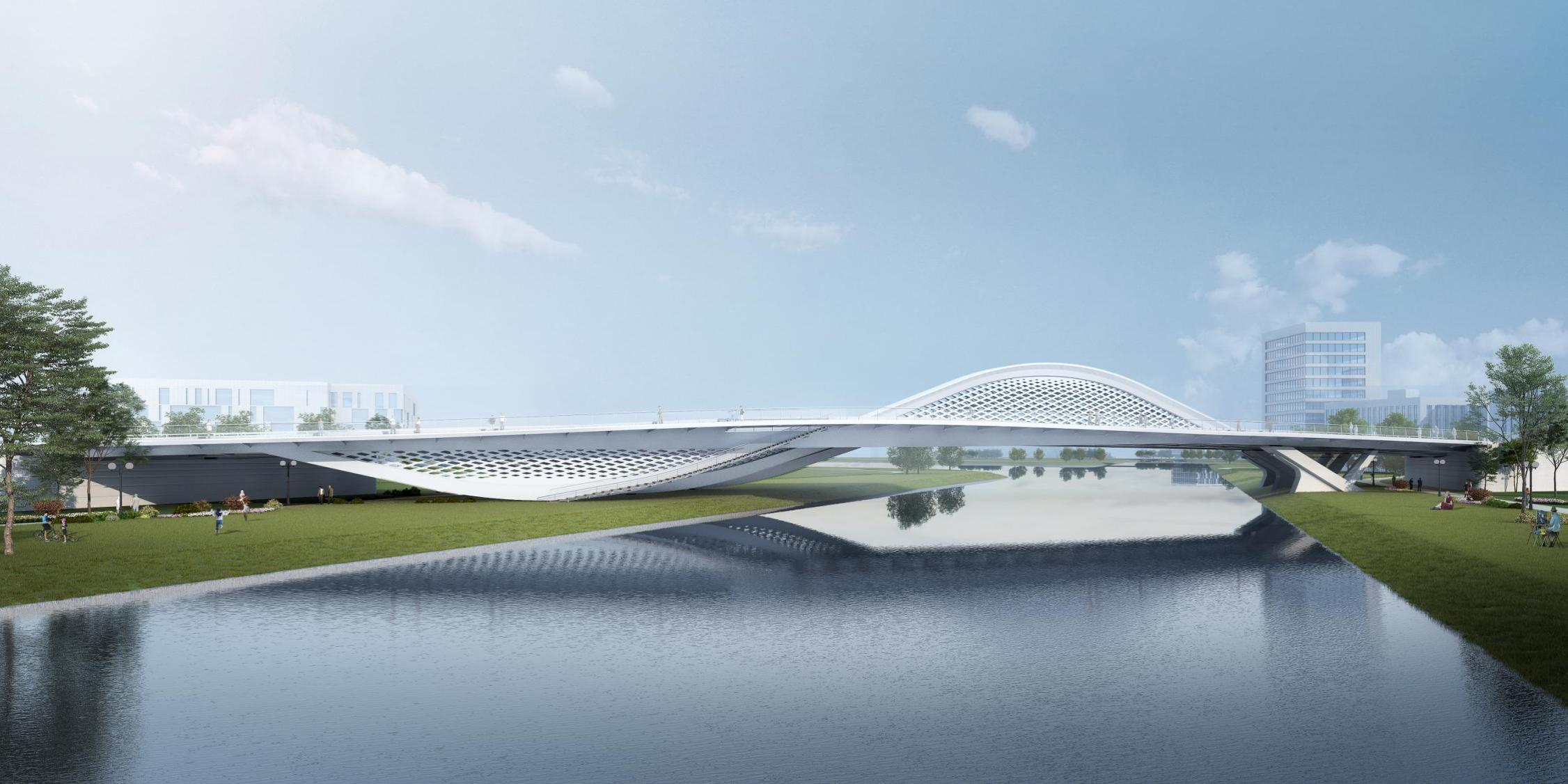 受委托建设,两座桥梁由世界著名桥梁设计师Marc MIMRAM先生主设计,通过研究济南的历史和文化,以泉与太极这个设计为根基,将泉城的刚中有柔、柔中带刚,与太极互为印证,力与美相结合,完成两座景观桥梁的设计。
