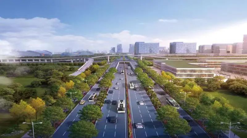 该项目北起孙耿北路,南至G104,全长16.2公里,是串联科技智造区、会展片区、体育中心、科创文办中心、总部经济区等5大重点片区的重要道路交通组织。致力于推动复合型智慧交通廊道建设,打造数字化、智慧化应用新标杆,实现统筹布置中低运量公共交通与市政道路,满足居民交通优先、绿色出行、生态景观等多重需求。