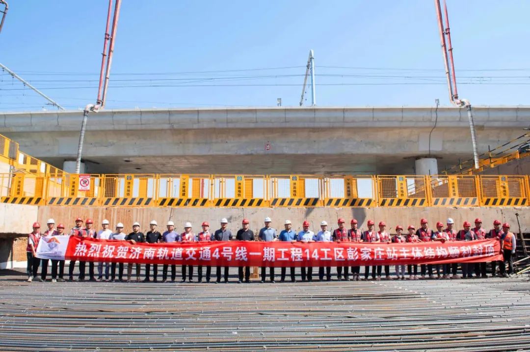 所属济南城建集团公司承建的济南轨道交通4号线一期工程14工区彭家庄站车站主体结构封顶,为4号线同期展开施工的所有车站中实现封顶的首座车站。
