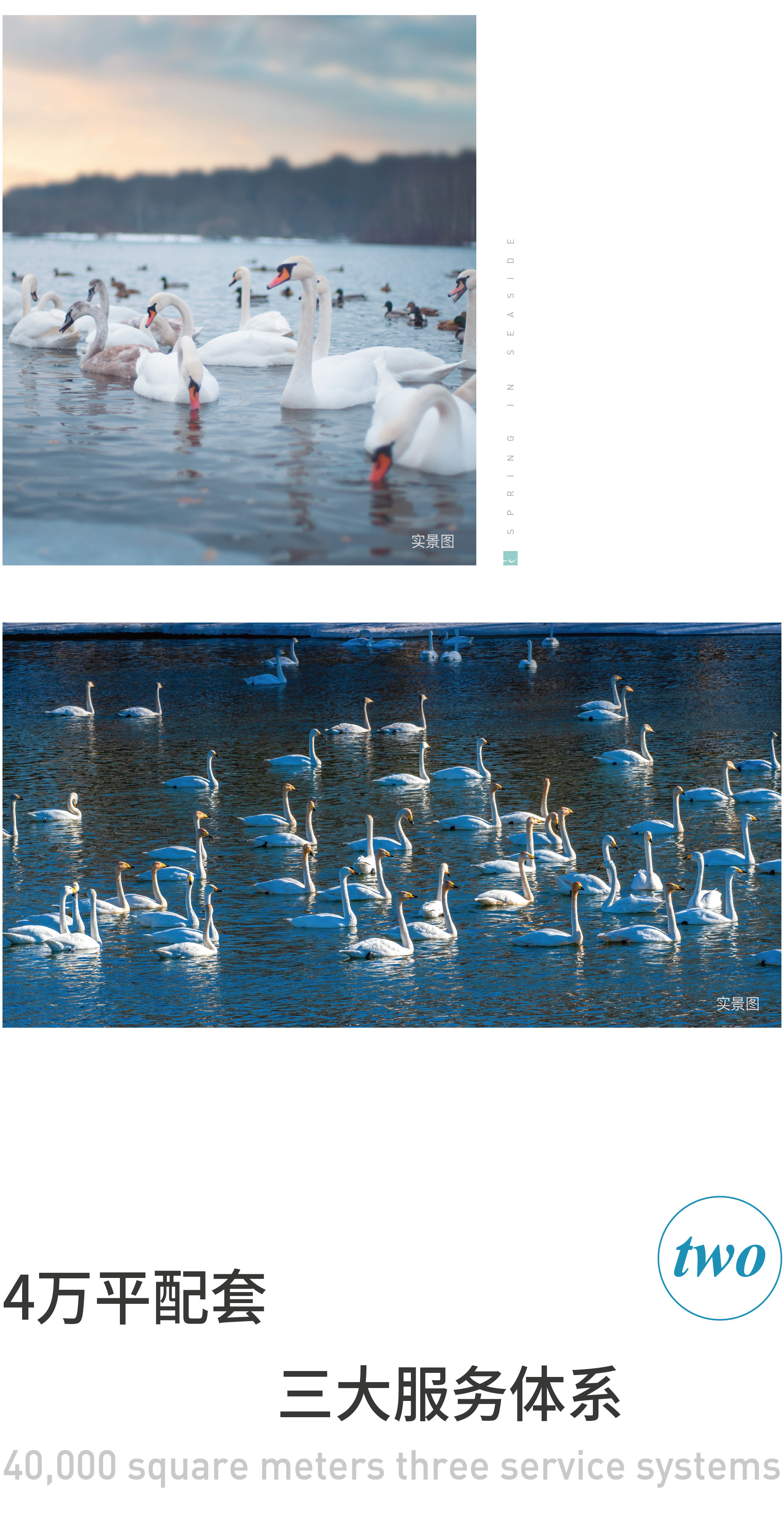 项目正坐落于威海荣成市北纬37°黄金海岸,紧邻世界四大天鹅栖息地之一——天鹅湖生态旅游区,每年初冬季节,北方的天鹅、大雁等鸟类陆续飞到天鹅湖越冬,给安静的小镇带来更多的浪漫与生机。