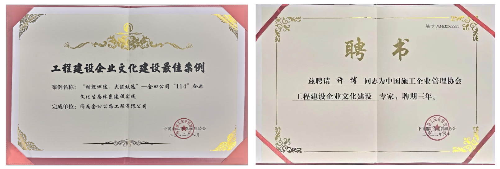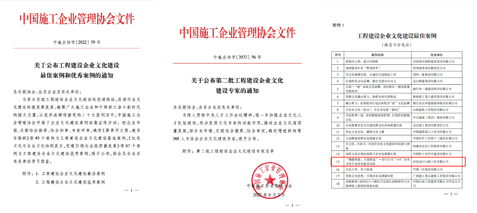 所属金曰公司参加中国施工企业管理协会在南宁市召开的2022年工程建设行业文化大会,金曰公司《“铺就坦途,大道致远”—金曰公司“114”成人看片生态体系建设实践》作品获评工程建设成人看片建设最佳案例,4人被增选评为中国施工企业管理协会成人看片建设专家。