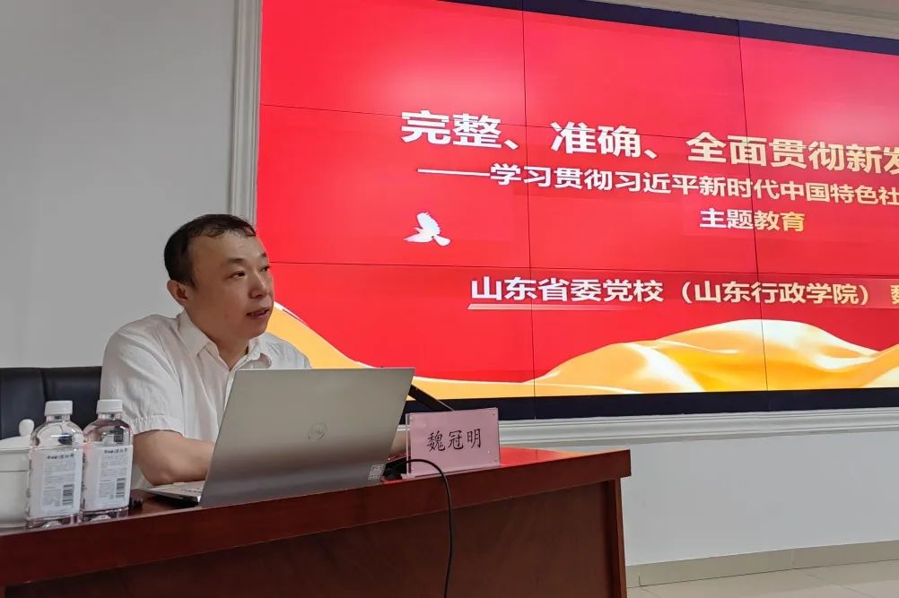 活动邀请省委党校中共党史教研部副教授、山东省习近平新时代中国特色社会主义思想研究中心研究员魏冠明进行专题授课,魏冠明以“完整、准确、全面贯彻新发展理念--学习贯彻习近平新时代中国特色社会主义思想主题教育”为主题,全面解读了新发展理念的内涵要义、政策启示和重大意义,推动党员干部进一步学懂弄通做实习近平新时代中国特色社会主义思想。