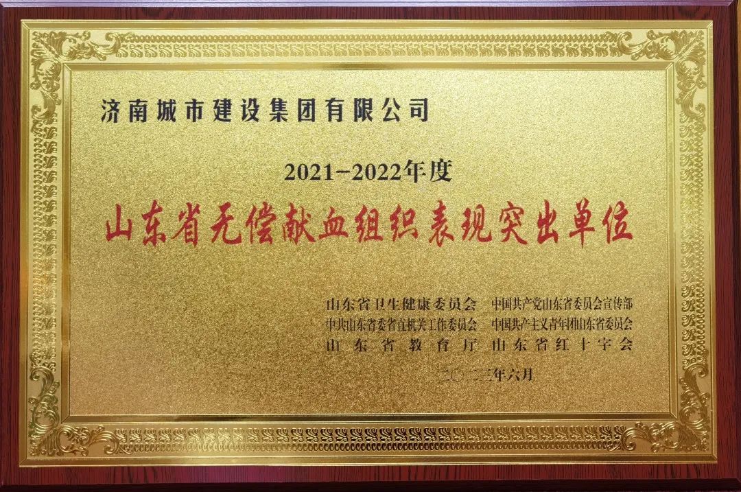 荣获“山东省无偿献血组织表现突出单位”荣誉称号。