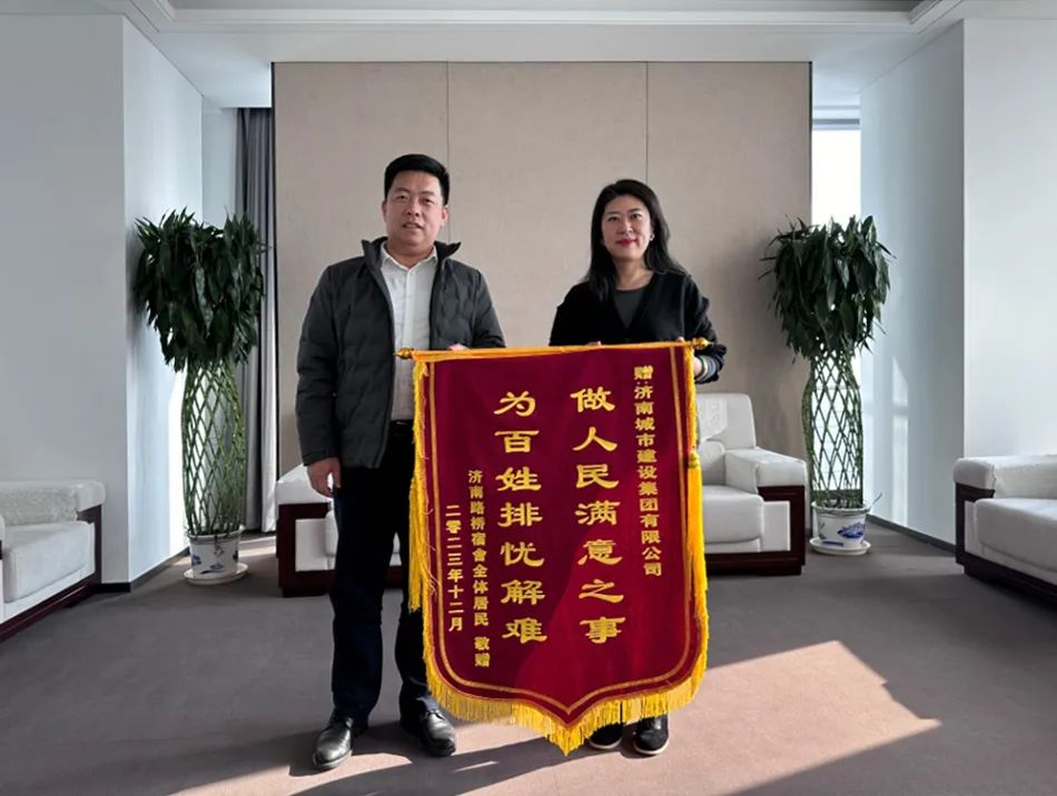 并赠送锦旗,天桥区泺口街道党工委副书记、办事处主任胡建国,集团综合办公室、滨河天城相关负责同志参加活动。