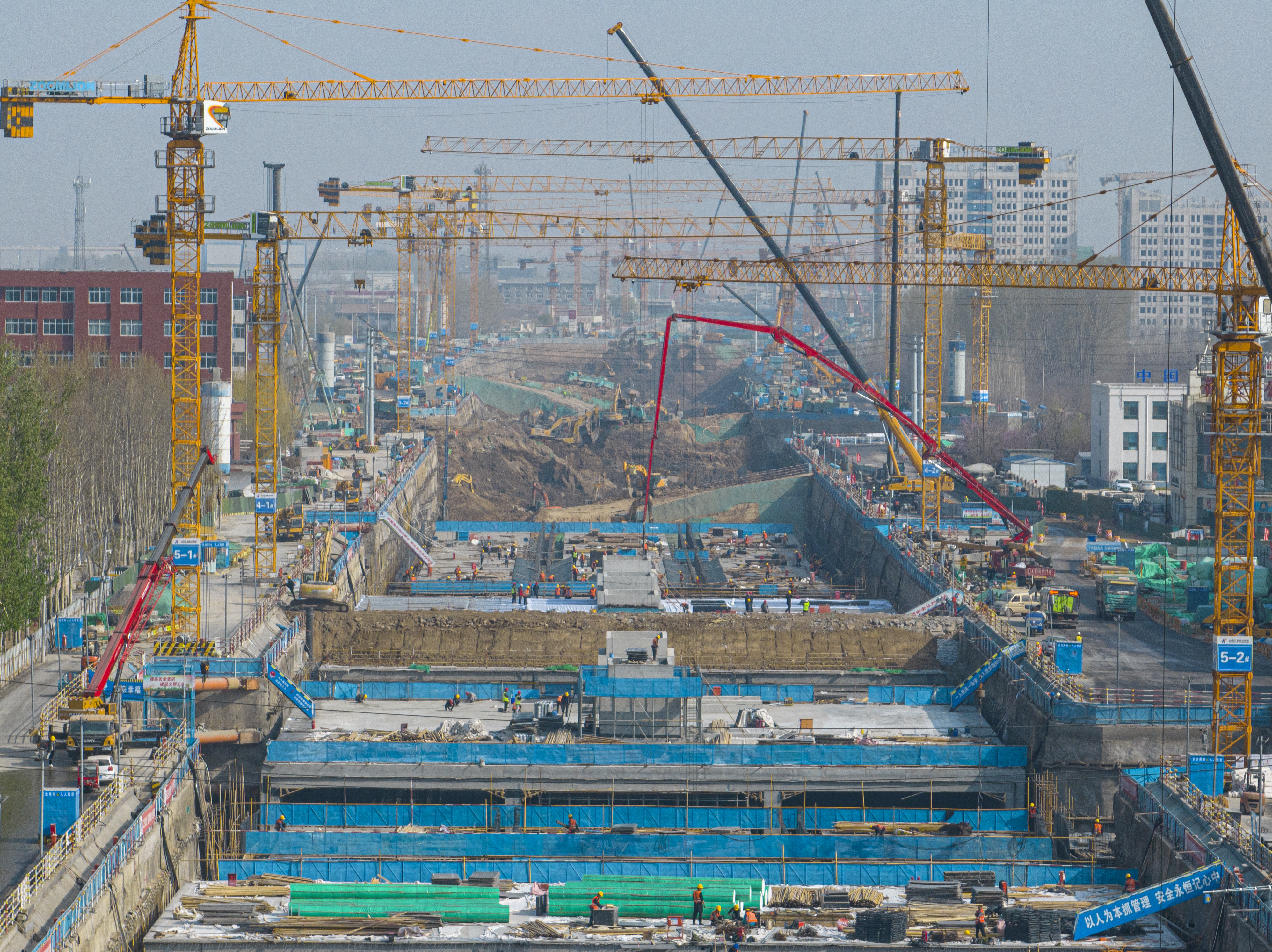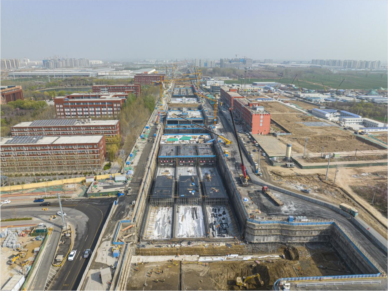 正积极推进黄河大道青银高速以北段项目建设,主体结构降水井完成率83%,冠梁完成率90%,地道土方开挖外运完成率84%,地道锚索完成率86%,地道坡面喷护完成率75%,止水帷幕完成率92%,主体浇筑完成率52%,底板防水卷材完成率34%,完成总工程量的39%。