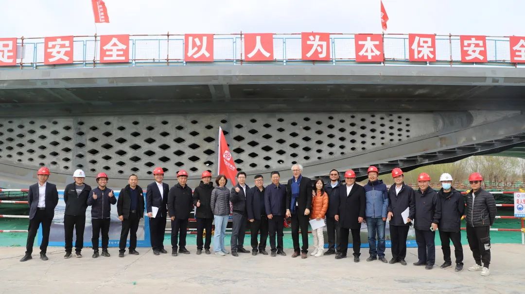 目前,两座大寺河桥梁钢结构主体已全部完成,马克·米姆拉姆一行在查看现场时,认真细致地查看了桥梁每一部分,与建设单位和施工单位进行了深度交流,对桥梁细节部分,特别是面漆和栏杆方面提出了宝贵建议,充分肯定了桥梁的建设成果,并现场手绘了两座桥梁的概念图,对建设单位及各参建单位的付出表示感谢。