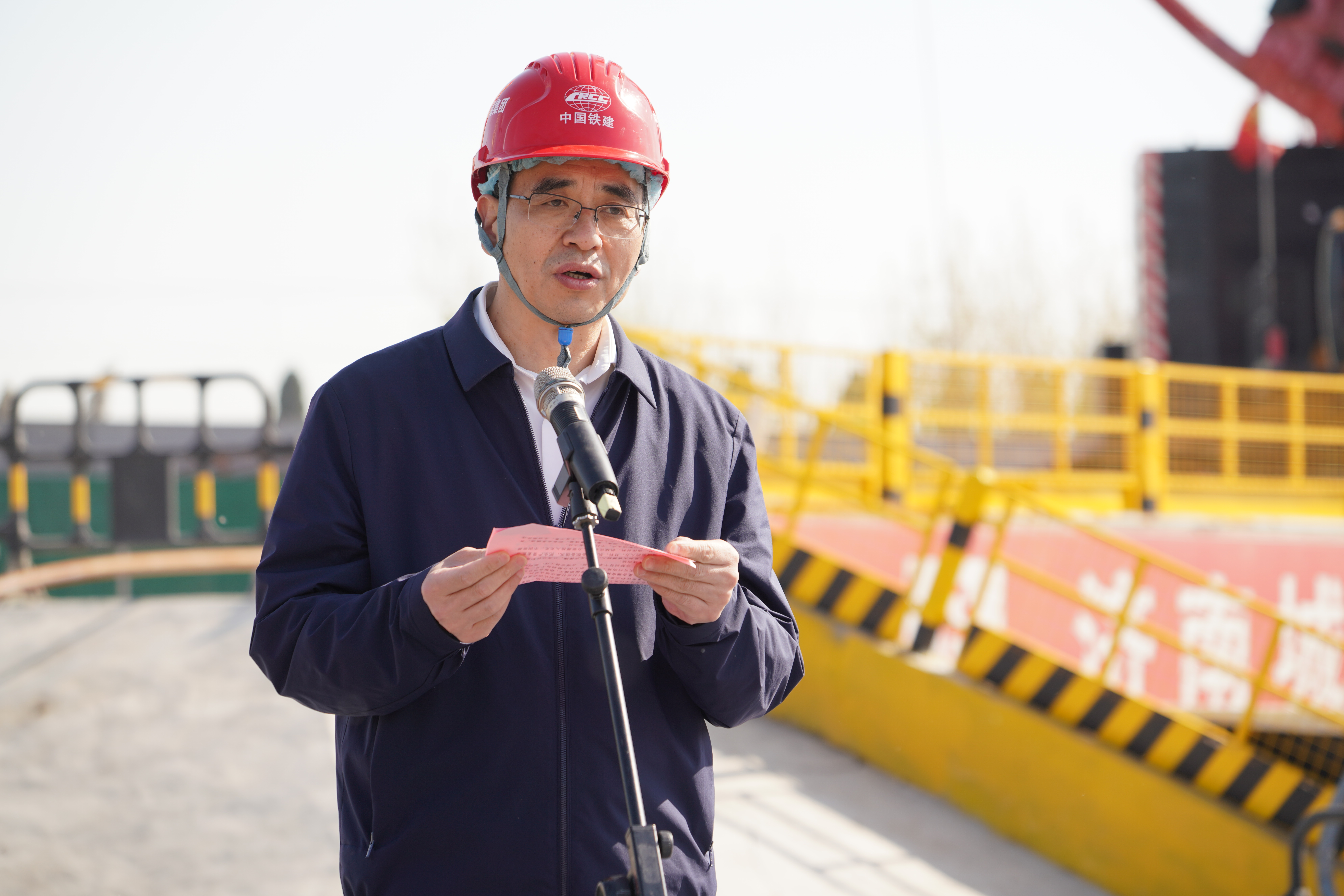 在济泺路穿黄北延隧道盾构始发井现场举行“只争朝夕开新局,奋发突破勇争先”2023年跨黄桥隧项目攻坚战活动启动仪式。