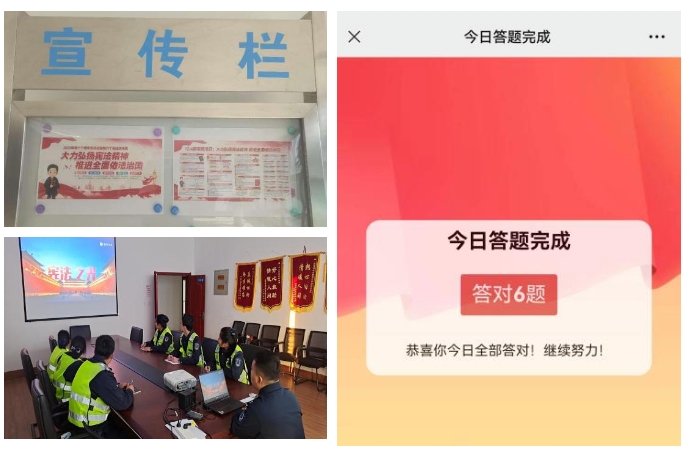 为深入推动宪法宣传活动有序开展,金龄健康公司领导班子高度重视,共同商议制定计划并下发相关部门,布置具体工作。公司组织员工在会议室统一收看了专题节目;组织员工参与宪法知识网上竞答活动;组织员工学法考法,以集中宣讲与自主学习相结合的形式,为员工讲解身边的法律知识;利用公司公众号平台发布宪法宣传周相关内容,在项目显要位置滚动展示示范创建标语,充分调动了员工学习二十大精神、习近平法治思想、宪法等法律知识的积极主动性,强化宪法意识。