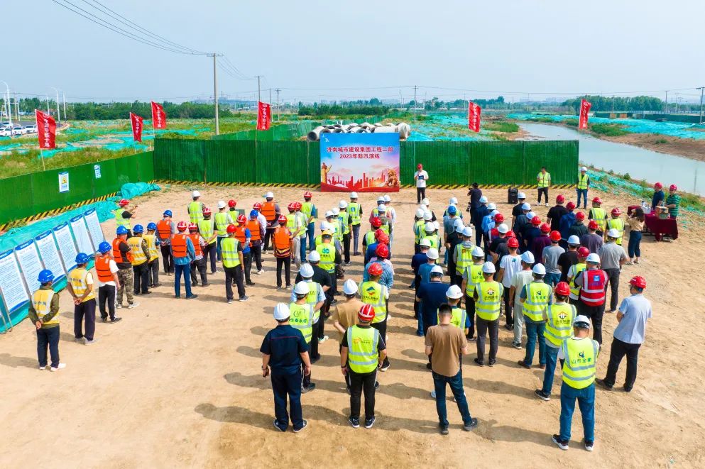 工程二部在济南新旧动能转换起步区青宁沟流域生态治理及截污工程(一期)项目现场举行 2023年度防汛应急演练。