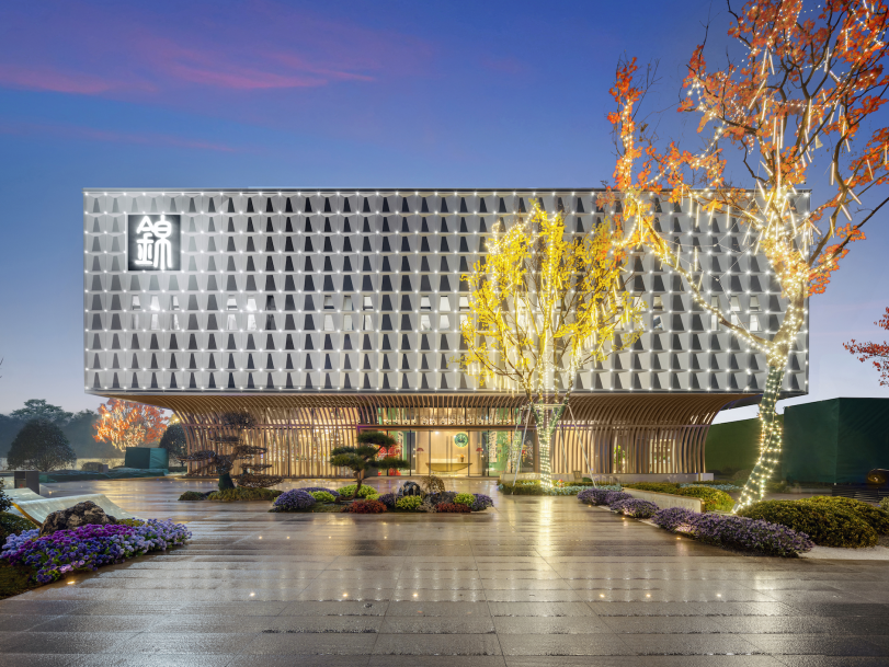 天风锦都项目位于济南市槐荫区,远观风云平静,近看风帆扬起,潺潺流水与汩汩喷泉的水景,加之抽象风帆,隔离嘈杂的城市道路与车流,形成广场艺术空间。邻边水景环抱,远处萤火点点,映衬建筑,大面积白色折线艺术的景墙,形成半围合室外洽谈区,艺术广场白天是中小型营销活动的举办地、唯美浪漫的室外洽谈区,功能复合,灵活多变。