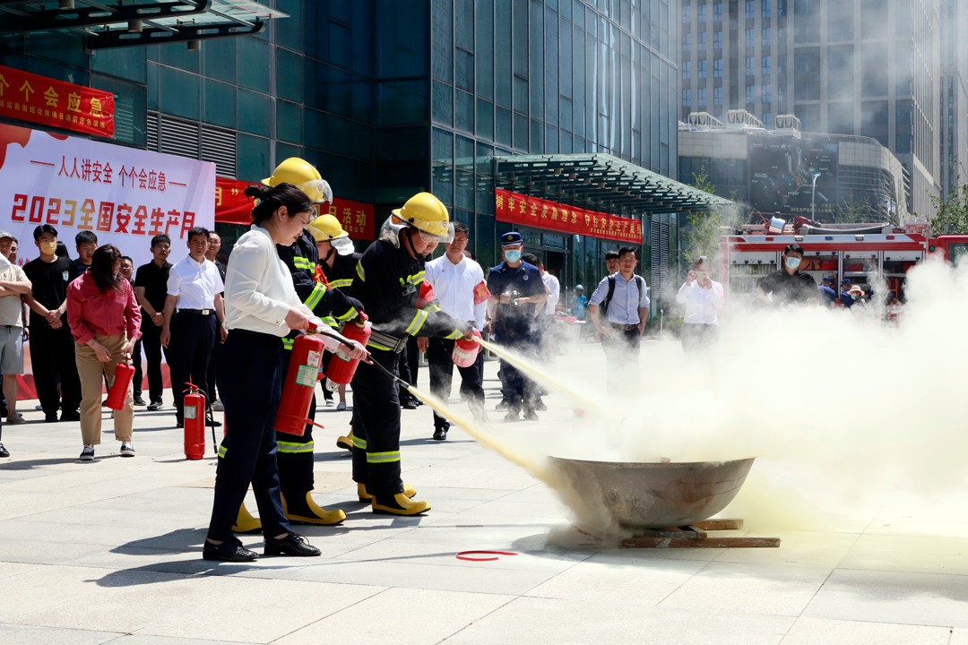 质量安全部和槐荫区消防救援大队主要负责同志以及西城大厦入驻的100余名企业员工参加演练活动。
