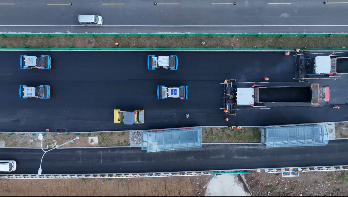 金曰公司致力于打造路面智能化施工体系,其中路基3D找平技术精度可达±1cm、基层3D摊铺技术平整精度可达±3mm。本次智能无人化机群摊压技术的加入,完善了路基、基层、面层一体化智能施工体系,形成了金曰公司路面智能化施工整体解决方案。