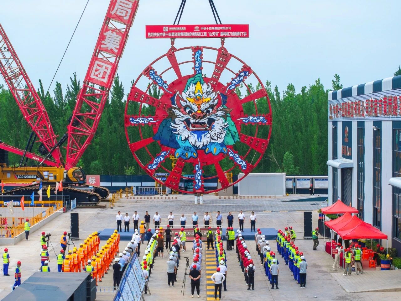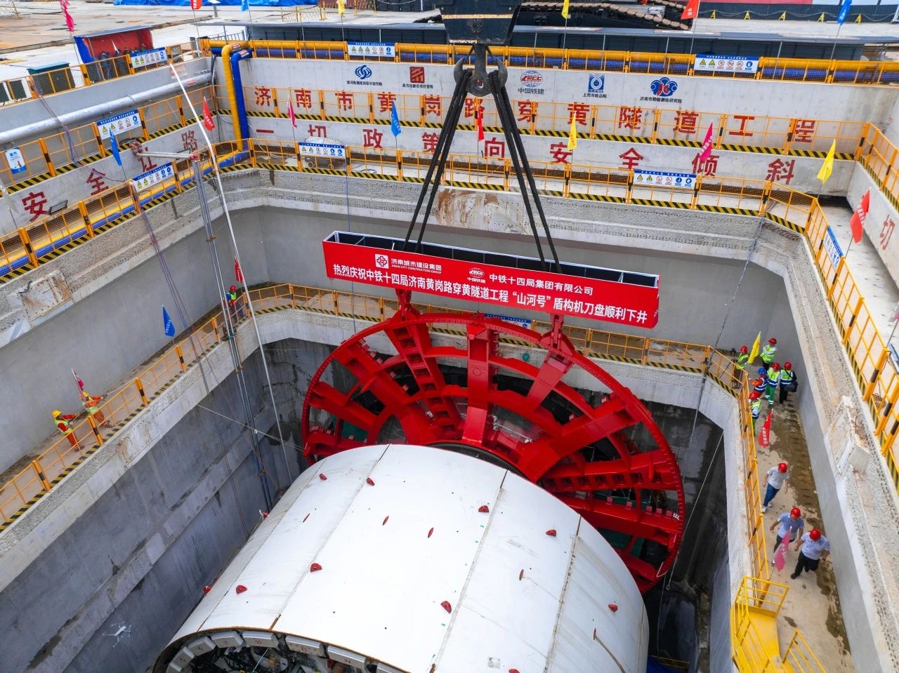 投资建设,中铁十四局集团承建的济南市黄岗路穿黄隧道迎来关键节点,“山河号”盾构机刀盘吊装下井,进入始发井预定位置,标志着世界最大直径水下隧道盾构始发进入“倒计时”。