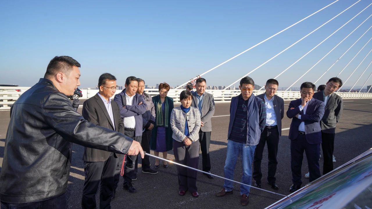 展厅,并前往济南黄河公路大桥扩建工程现场与济西湿地,听取了各项目相关负责同志对项目的建设进展情况与园区运营状况的汇报。