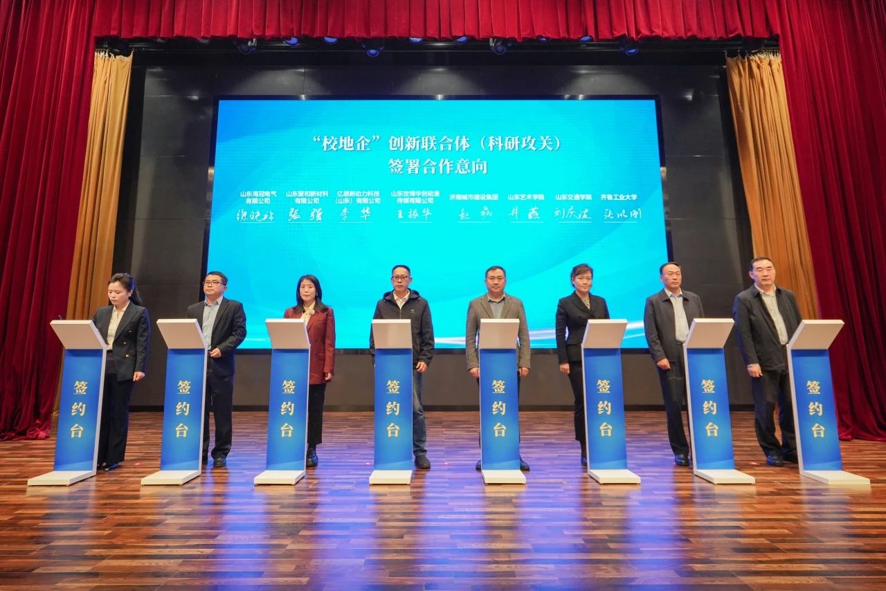 与齐鲁工业大学、山东交通学院、山东艺术学院等7家单位签订合作意向书;集团所属山东金宇信息科技集团有限公司作为“校地企”创新联合体(科研攻关)成员单位进行路演。