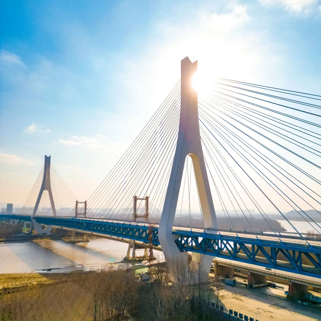 1982年7月,济南黄河大桥(老桥)建成通车,作为当时亚洲跨径最大的公路斜拉桥,入选济南“1978—1988泉城十大景观”。如今,新桥与老桥“并肩”相望,成为黄河上第一座不等跨并桥建设工程,也是黄河上跨径最大、钢桥总长最长的公轨分层合建桥梁,刷新“跨黄”桥梁纪录。