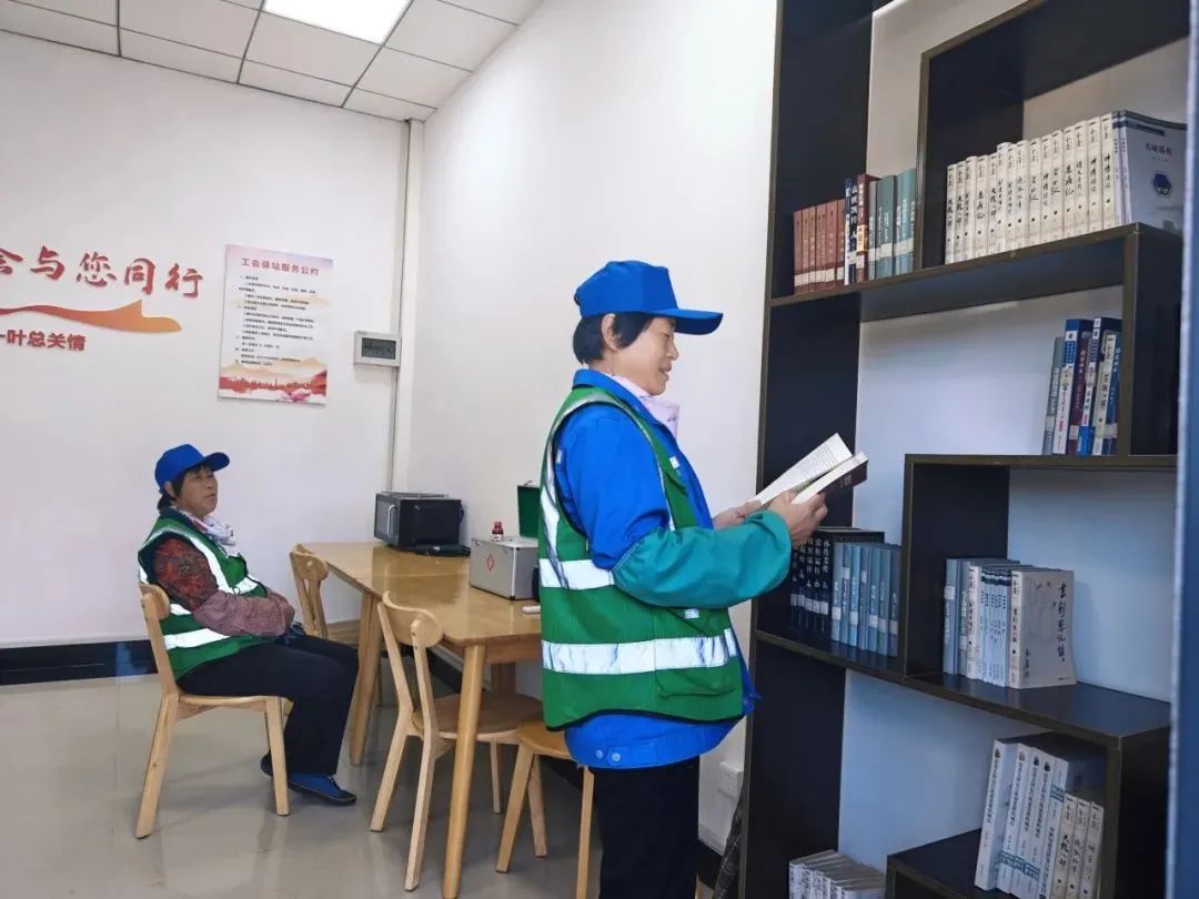 园区三所工会驿站自建立以来,一直致力于为户外劳动者提供一个遮风挡雨、休息充电的场所。驿站内配备了饮水机、微波炉、医药箱等基本设施,园区公司还通过“工会驿站+思想引领”等创新服务模式,设置了健康咨询和安全培训,为大家提供了一个既能休憩放松又能提升自我的温馨空间。