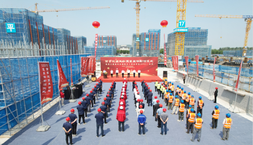 产业园经济产业链首批项目迎来重要节点,由山东贯月科创集团公司投资建设的鲁澳大健康科技园项目二标段主体提前30天封顶,公司为期100天的“百日攻坚”暨劳动竞赛活动取得阶段性成果。
