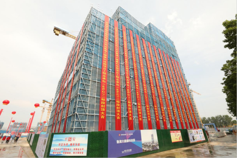 产业园经济产业链首批项目,由所属山东贯月科创投资集团投资建设。项目共分为两个标段,当前封顶的属于二标段。