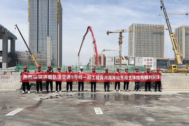 所属济南城建集团公司承建的济南轨道交通9号线项目黄河南岸站东段主体结构封顶,为盾构接收奠定基础。