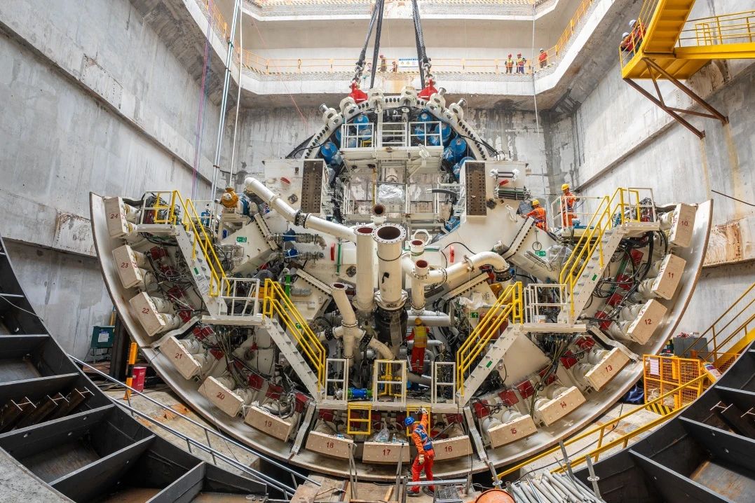 截至目前,“山河号”盾构机主驱动、一号台车、桥架、二号台车、四号台车及五块盾体下井吊装任务已圆满完成。下一步,将开展刀盘、三号台车及剩余盾体分块吊装作业,为“山河号”的顺利始发打好坚实基础。