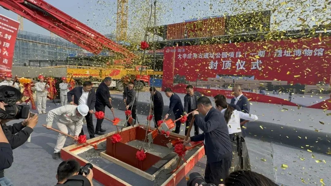 所属山东易方达建设管理集团有限公司负责监理的大辛庄考古遗址公园(一期)遗址博物馆项目主体结构封顶。